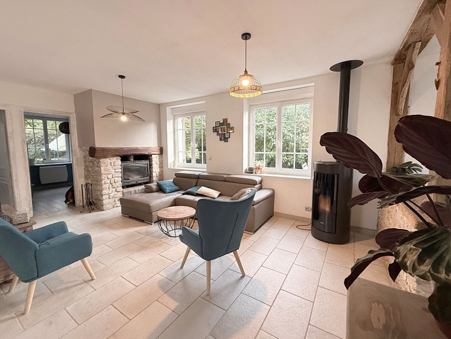 4 minutes BREVALMaison ancienne comprenant entrée, séjour avec cheminée insert et poêle à granules, cuisine américaine aménagée avec coin repas, deux chambres, salle de douche à l'iatlienne, wc.