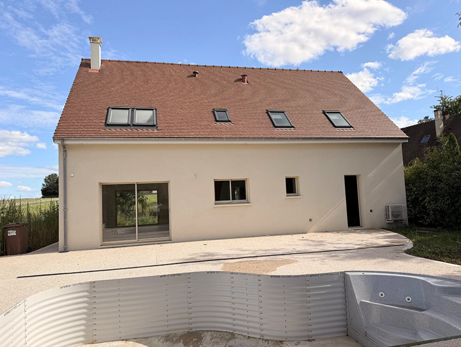 Proche HOUDAN dans le 78Maison neuve comprenant entrée, grand séjour, cuisine américaine aménagée, arrière-cuisine, wc, chambre avec salle de douche.
