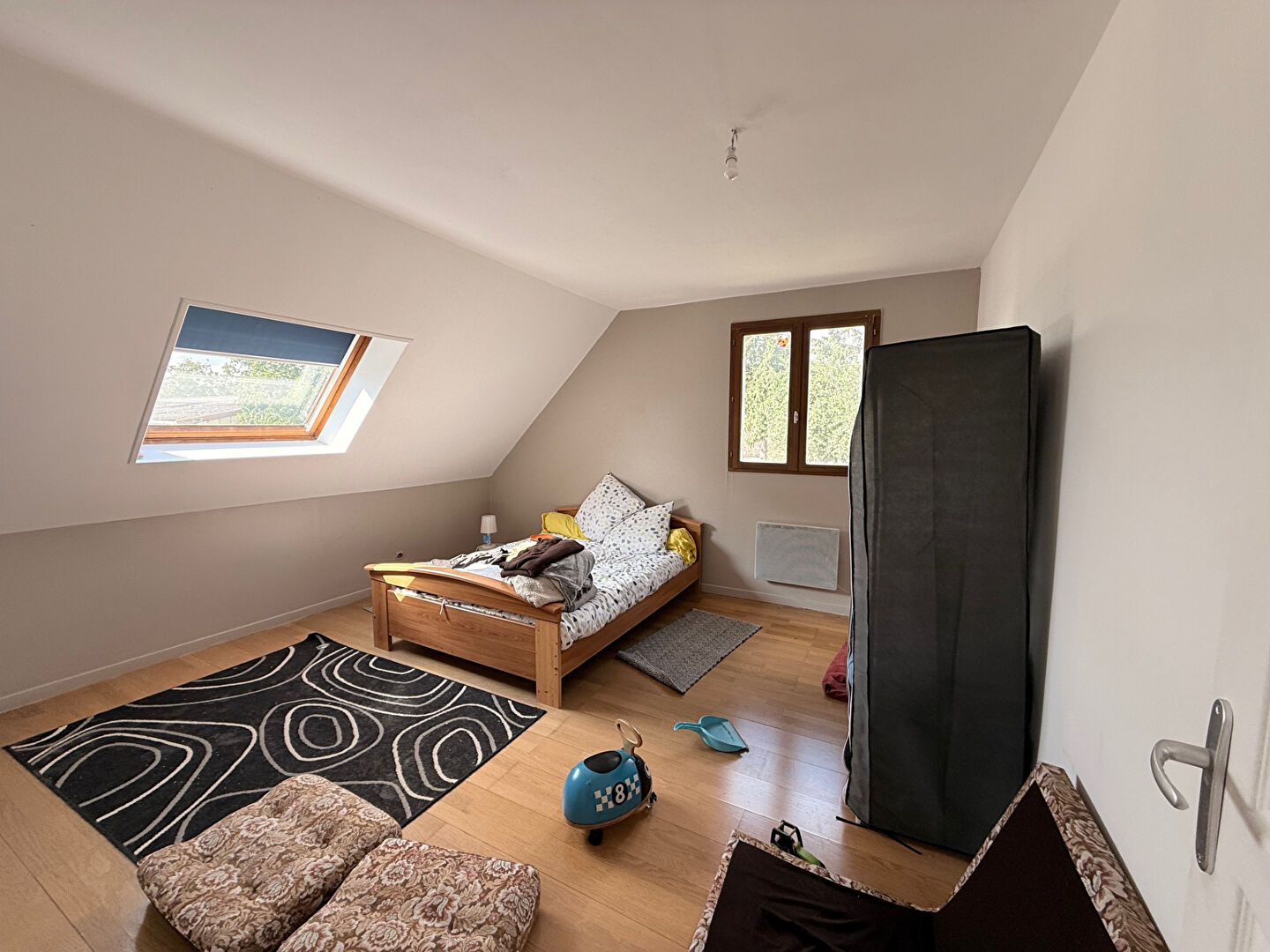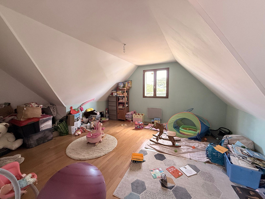 A l'étage : pièce palière, trois chambres dont une grande avec salle de douche et wc.