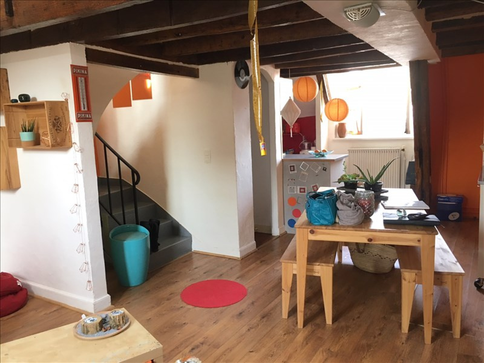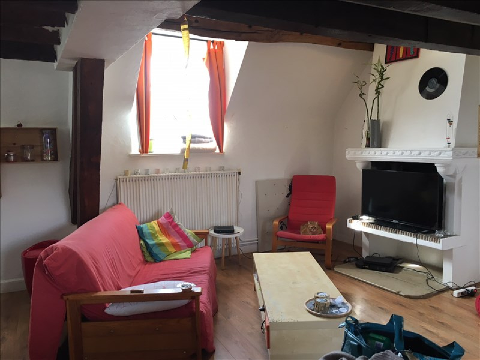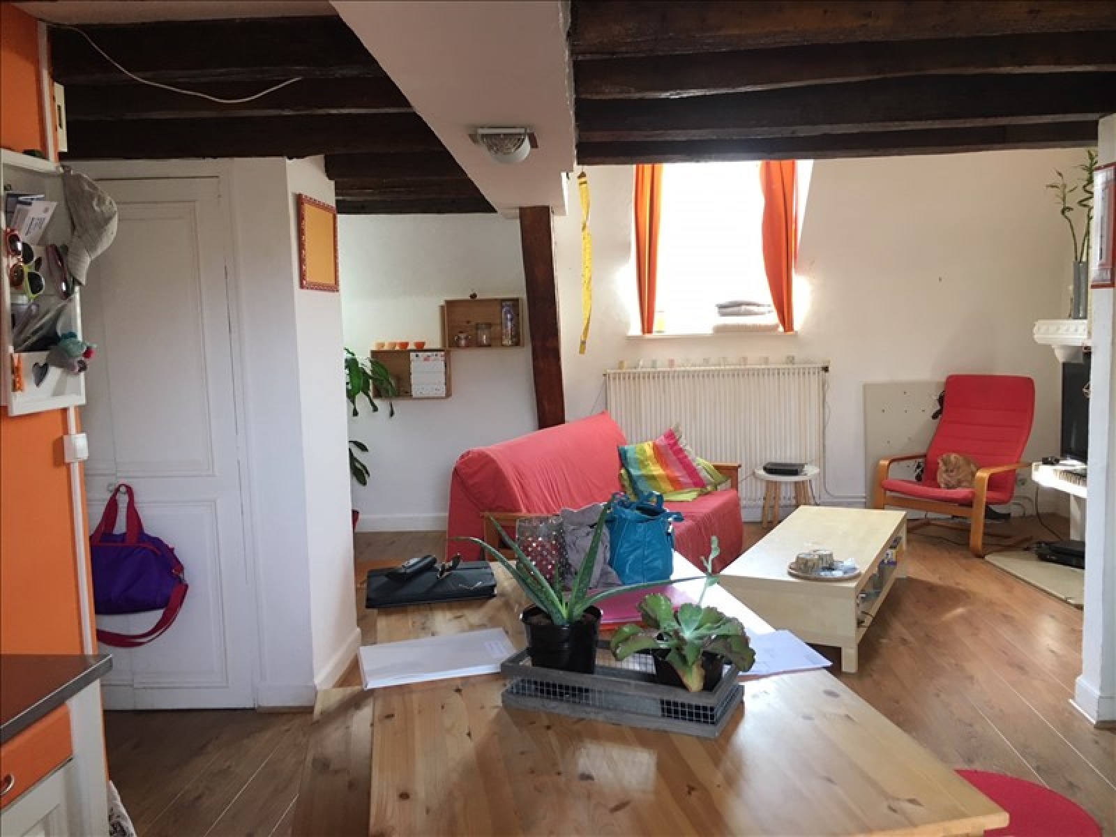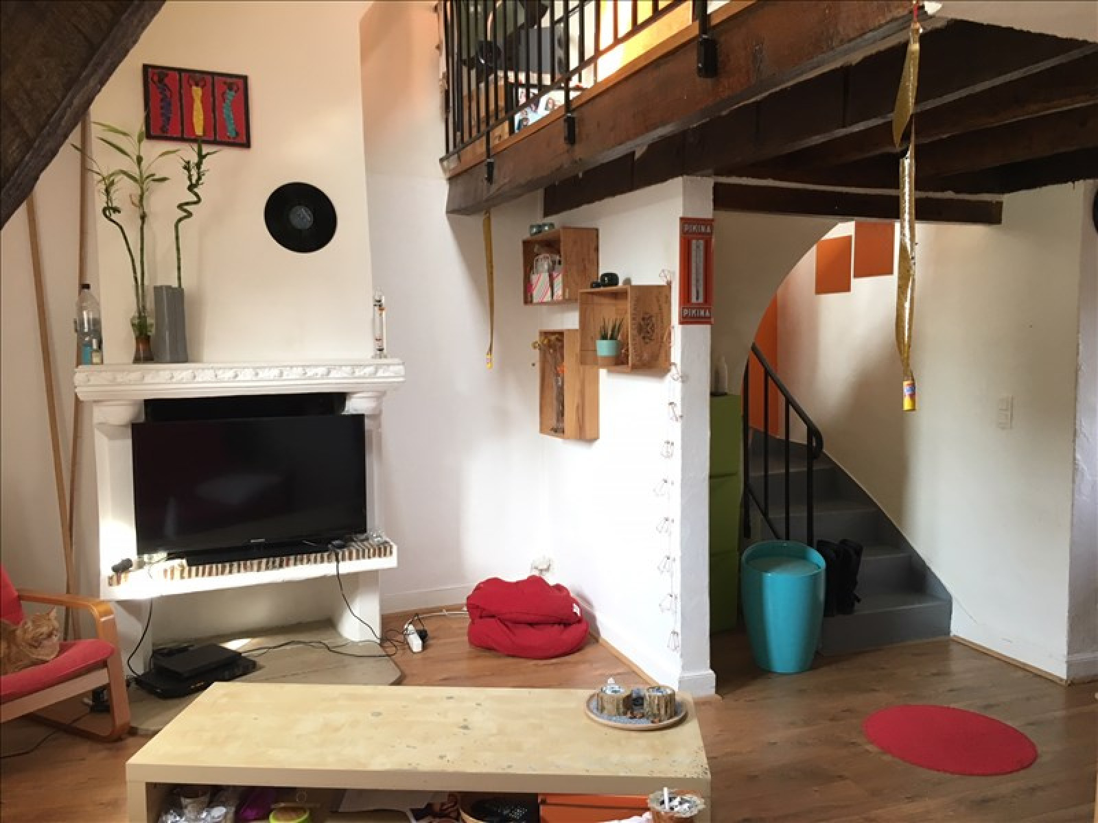 Au 2nd étage, appartement rénové comprenant entrée, séjour cathédrale, cuisine américaine aménagée et équipée, wc. ~A l'étage : chambre avec salle de douche.~Beaucoup de charme. Toutes commodités à pied.~Copropriété de 12 lots. Environ 210 EUR de charges mensuelles dont eau, chauffage.~Aucune procédure en cours menée sur le fondement des articles 29-1 A et 29-1 de la loi n°65-557 du 10 juillet 1965 et de l'article L. 615-6 du CCH.~Réf 3376