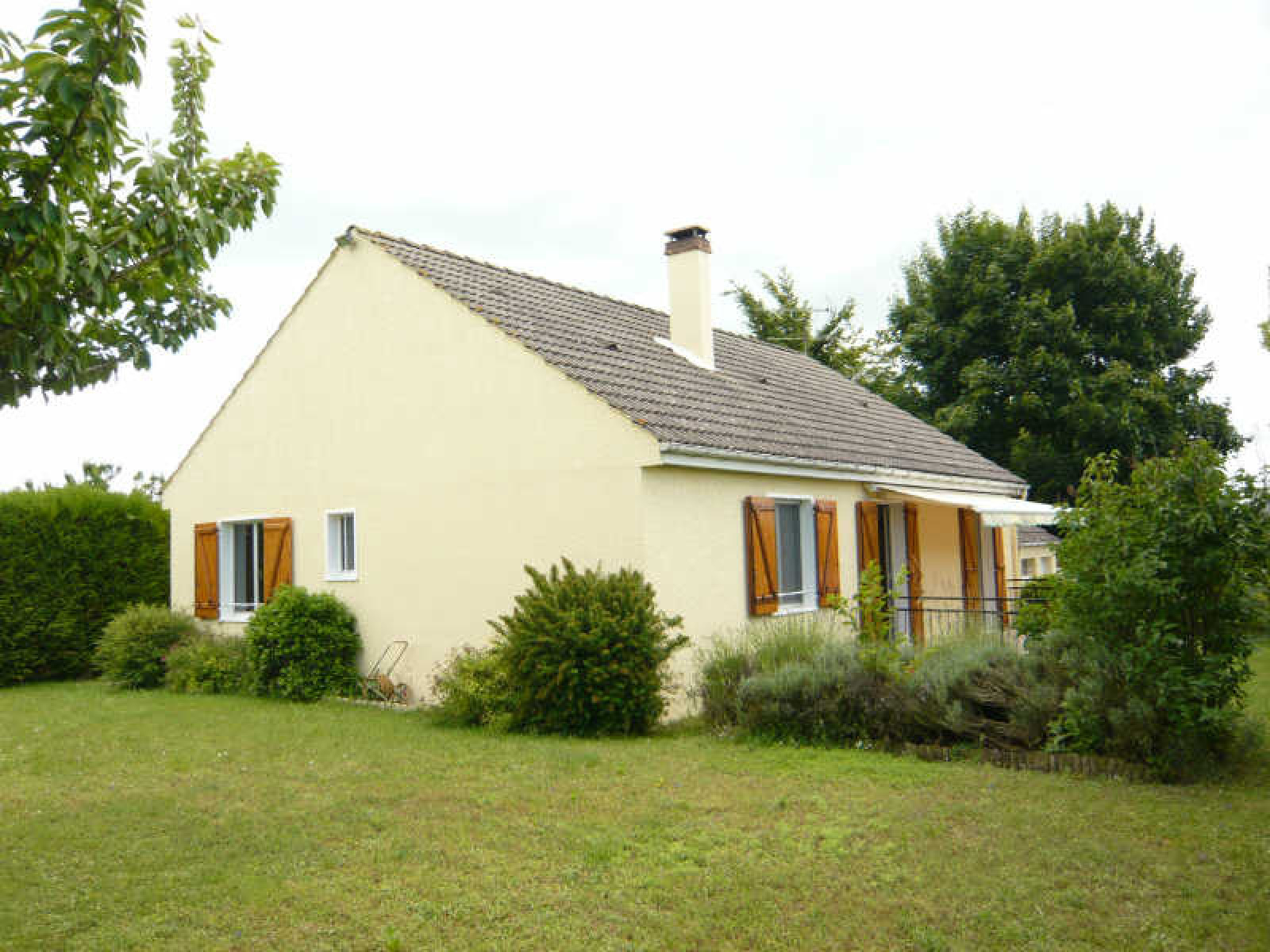 Pavillon de plain-pied comprenant entrée, cuisine aménagée et équipée, séjour avec cheminée insert, 3 chambres, salle de douche, wc.~Garage. Terrain clos d'environ 1.120 m².~Réf 829