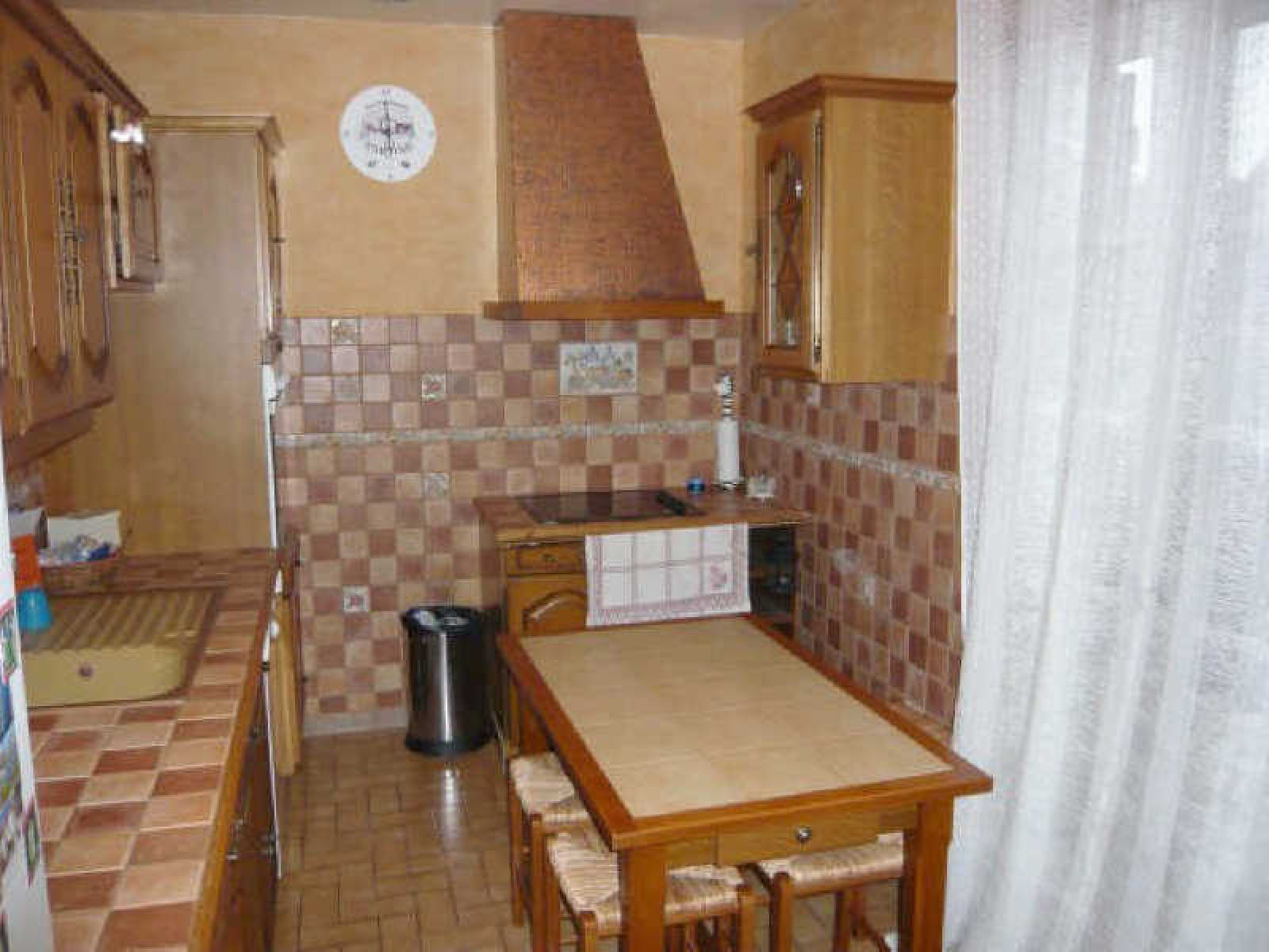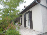 Pavillon comprenant entrée, cuisine aménagée et équipée, séjour en L avec cheminée insert, chambre avec salle de bains, wc.~A l'étage : pièce palière, 2 chambres.~Garage 2 voitures avec grenier aménageable. Préau. Terrain clos d'environ 560 m².~Réf 570