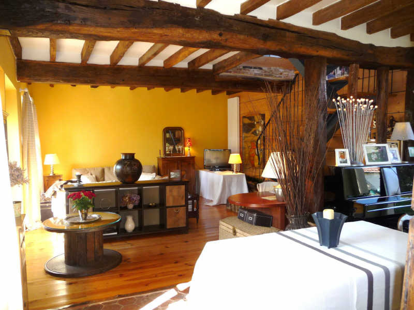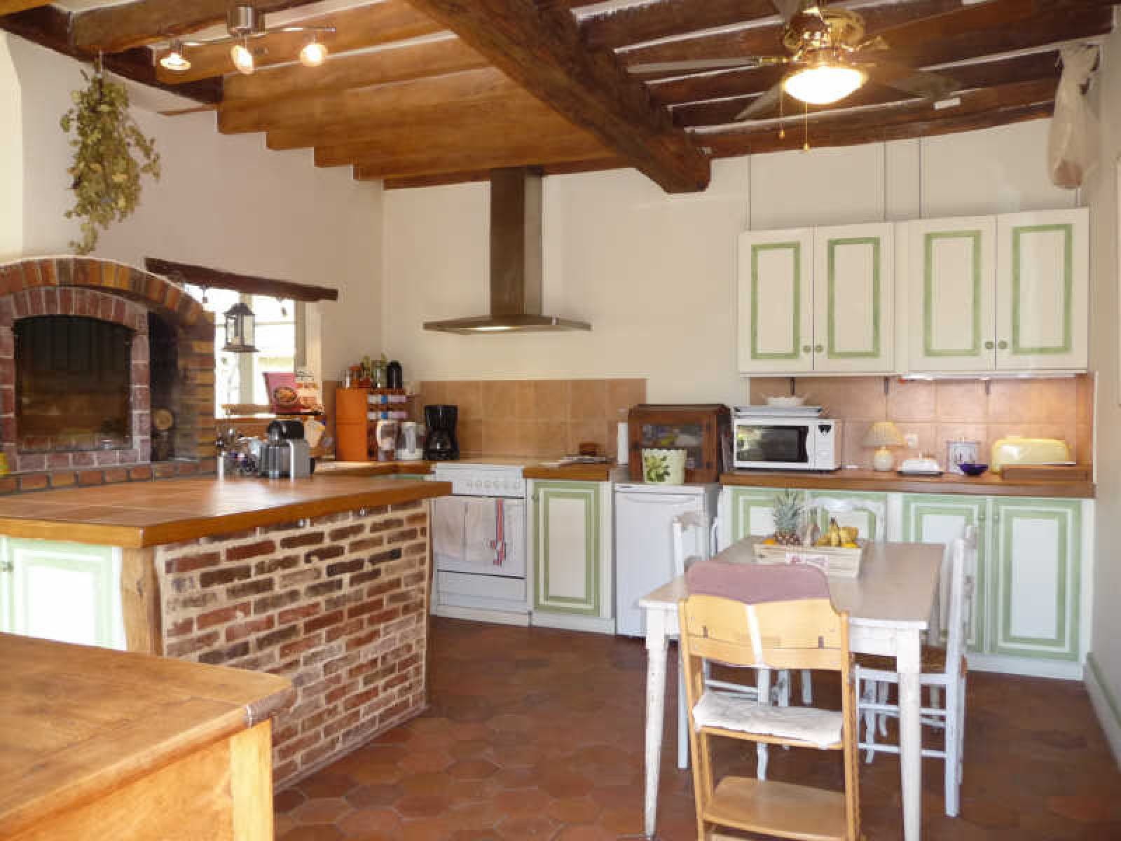 Maison ancienne comprenant séjour avec cheminée, cuisine aménagée avec coin repas et cheminée, salle de douche avec wc, chambre.~A l'étage : palier, 3 chambres, salle de bains, wc.~Cave. Garage indépendant. Terrain clos d'environ 263 m².~Beaucoup de charme.~Réf 834
