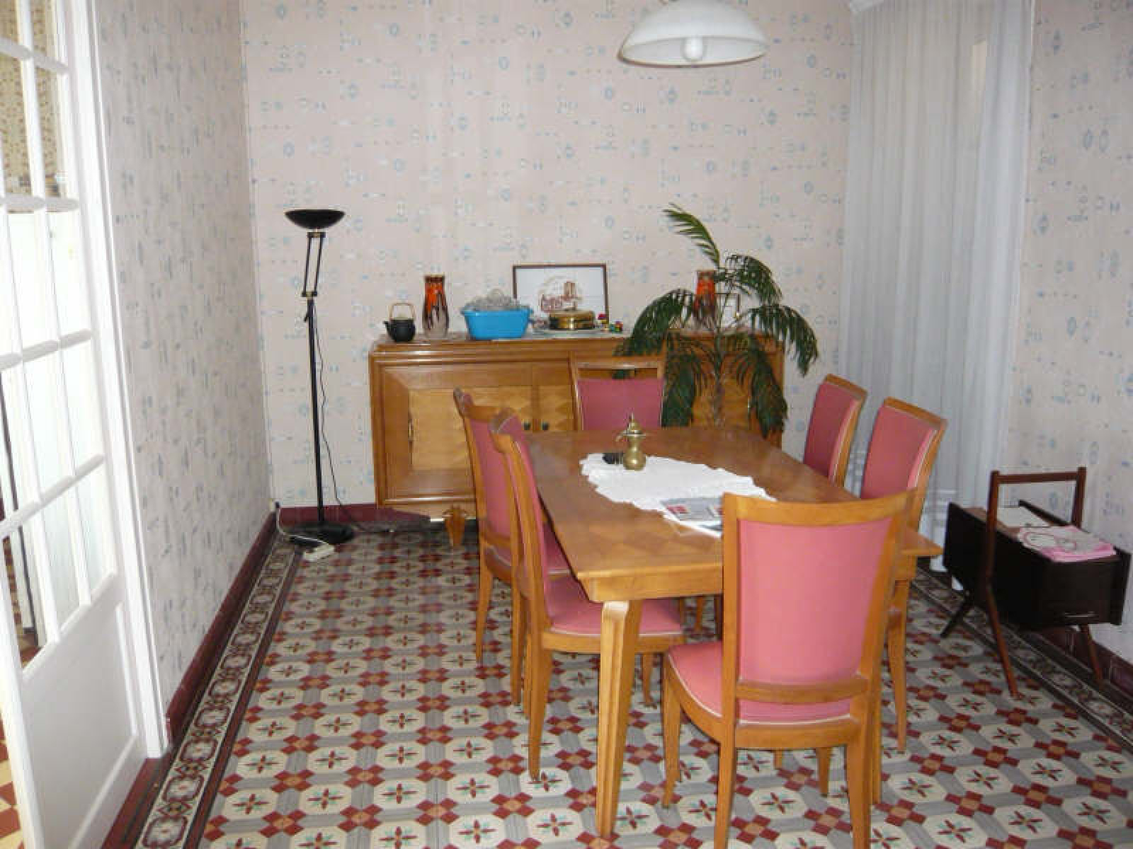 Maison ancienne comprenant entrée, salon, salle à manger, cuisine, atelier, buanderie, wc.~A l'étage : 4 chambres, salle de douche, wc.~Garage attenant. Cave. Dépendance de 2 pièces.~Terrain clos d'environ 569 m².~Réf 2834