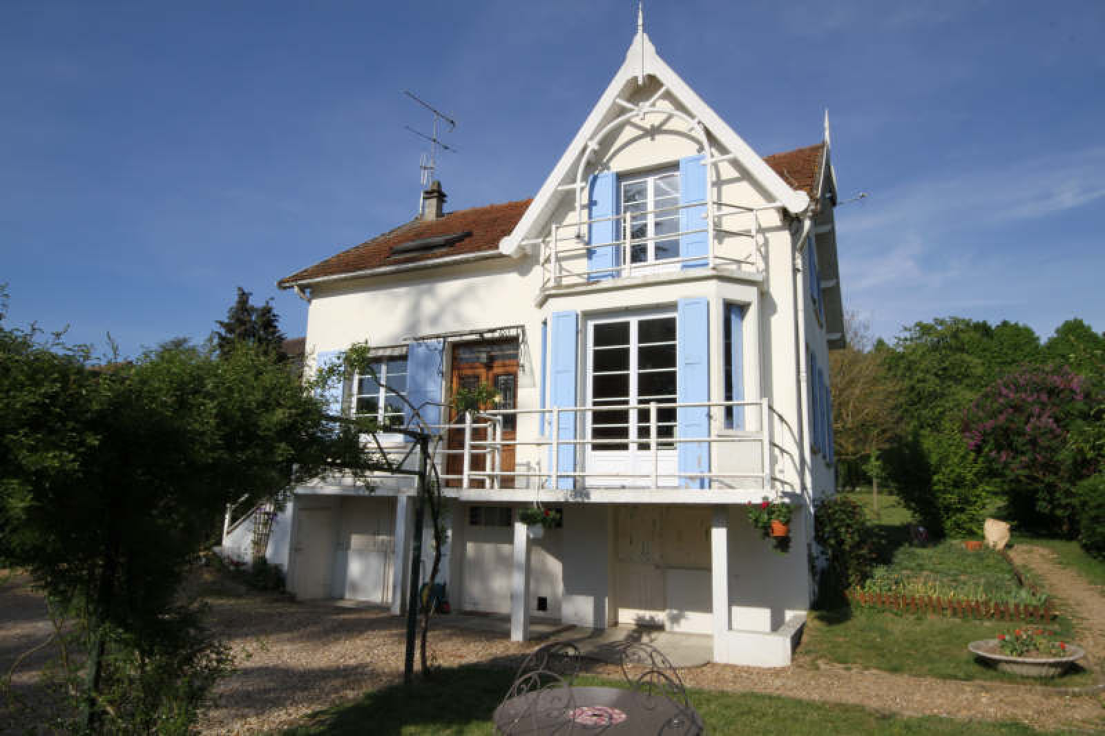 Maison comprenant entrée, salon avec poêle, cuisine aménagée, chambre, salle de bains avec wc.~A l'étage : palier, 3 chambres dont une avec dressing, salle de douche avec wc.~Sous-sol total surélevé comprenant atelier, garage, cave, buanderie.~Puits. Terrain clos d'environ 1.000 m².~Bel environnement. Ecoles sur place, commerces à proximité.~Réf 1149
