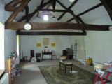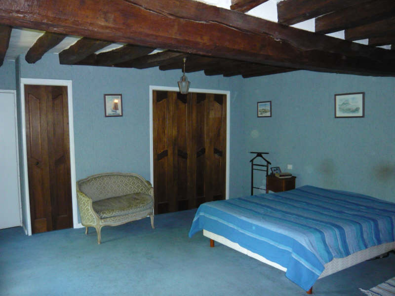 Ancien relais de poste comprenant entrée, séjour de 35 m² avec cheminée, cuisine salle à manger de 45 m², chambre, salle de douche, wc.~A l'étage : grande pièce palière, bureau, pièce de 40 m², 3 chambres dont une de 23 m² avec salle de bains et wc.~Grenier.~Granges de 70 et 35 m². Chambre d'amis avec point d'eau.~Garage. Atelier avec grenier.~Terrain d'environ 2.700 m².~Réf 1202