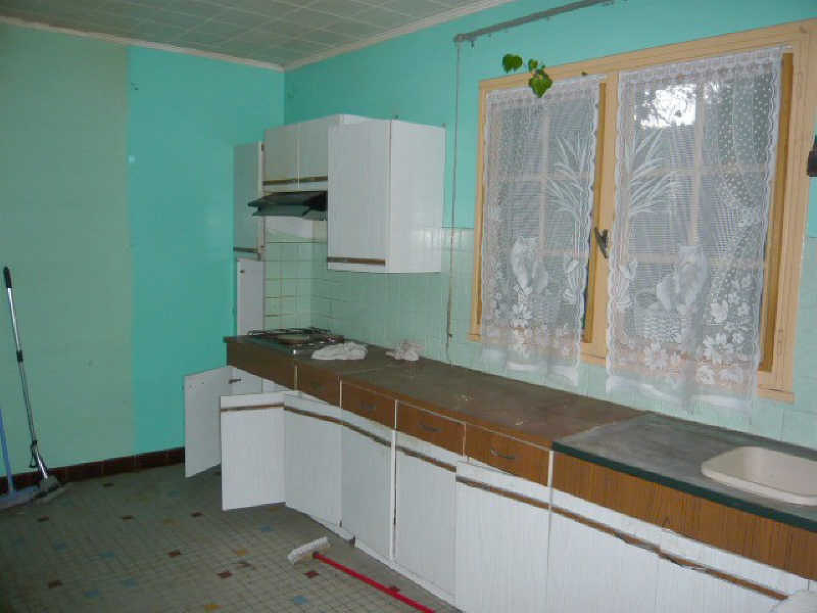Pavillon comprenant entrée, cuisine aménagée, séjour avec cheminée, chambre, salle de bains, wc.~A l'étage : 2 chambres dont une avec wc et point d'eau (salle de douche possible).~Sous-sol total comprenant chaufferie, garage, cave.~Terrain clos d'environ 491 m².~Travaux à prévoir.~Réf 794