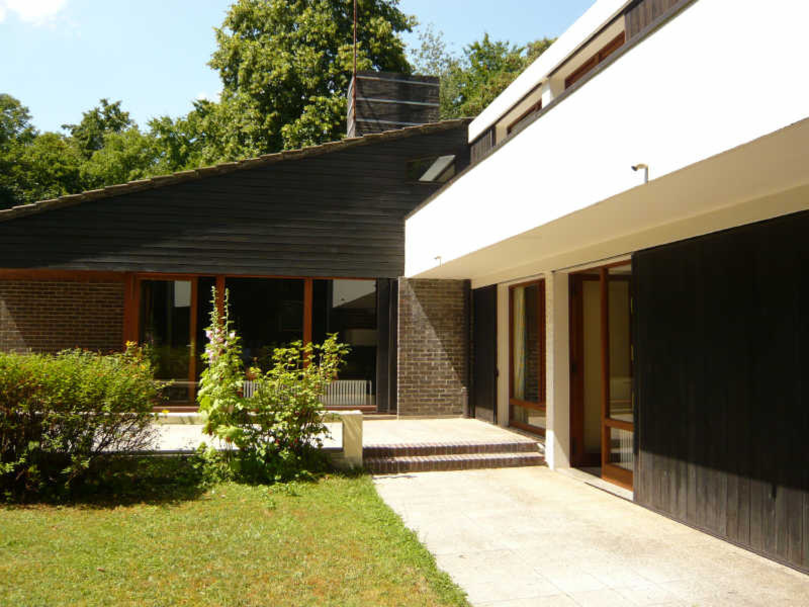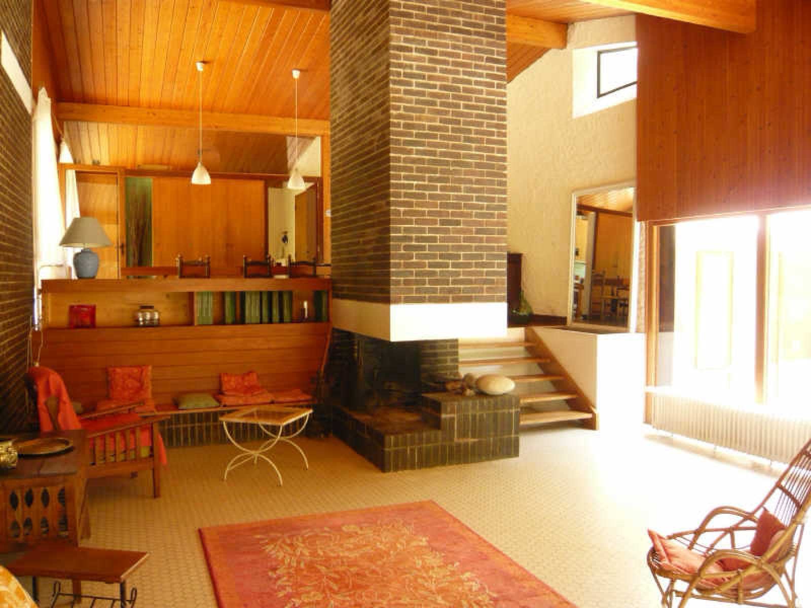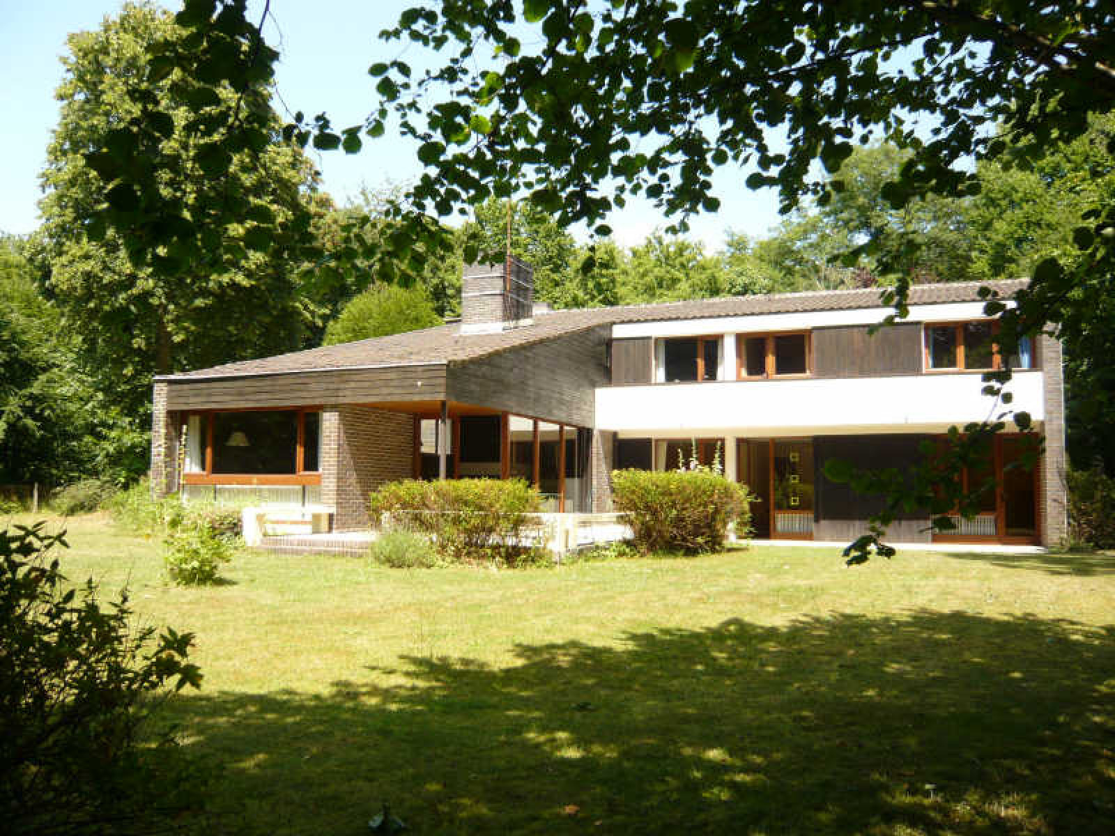 Maison d'architecte comprenant entrée, grand séjour avec cheminée, cuisine aménagée, arrière-cuisine, salle de sport, 3 chambres, salle de douche, wc, buanderie.~A l'étage : 3 chambres, salle de bains, salle de douche, wc.~Sous-sol comprenant garage double, chaufferie, cave.~Terrain clos d'environ 3.667 m².~Beaux volumes.~Réf 848