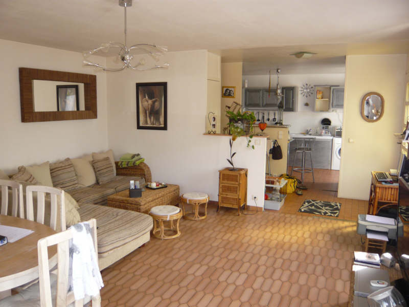 Maison de ville comprenant entrée, salon, cuisine américaine aménagée et équipée, wc.~A l'étage : palier, 3 chambres, salle de bains.~2 boxes. Terrasse. ~Ecoles et commerces à pied.~Réf 1628