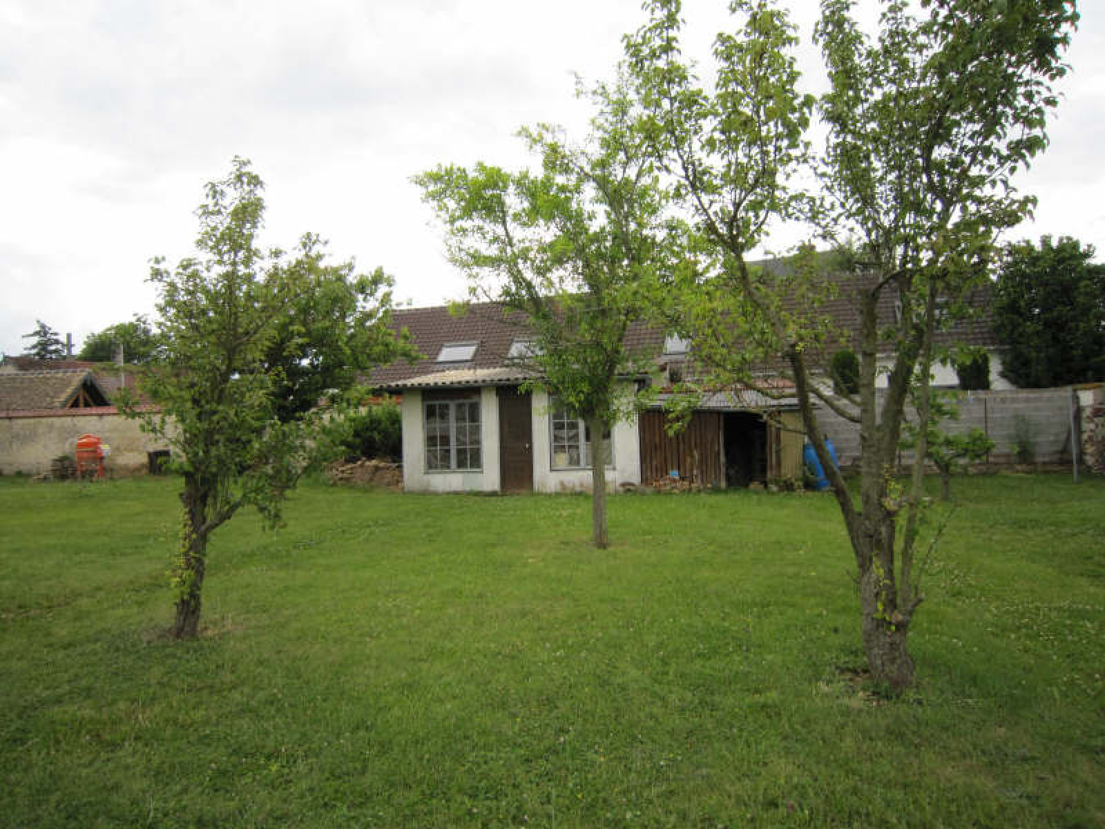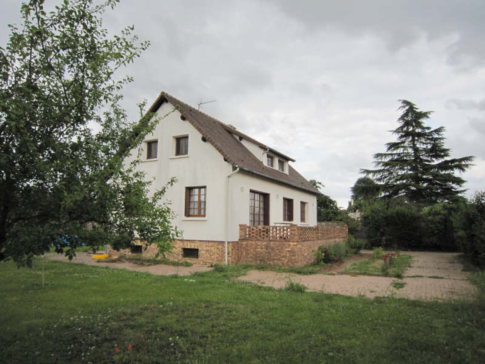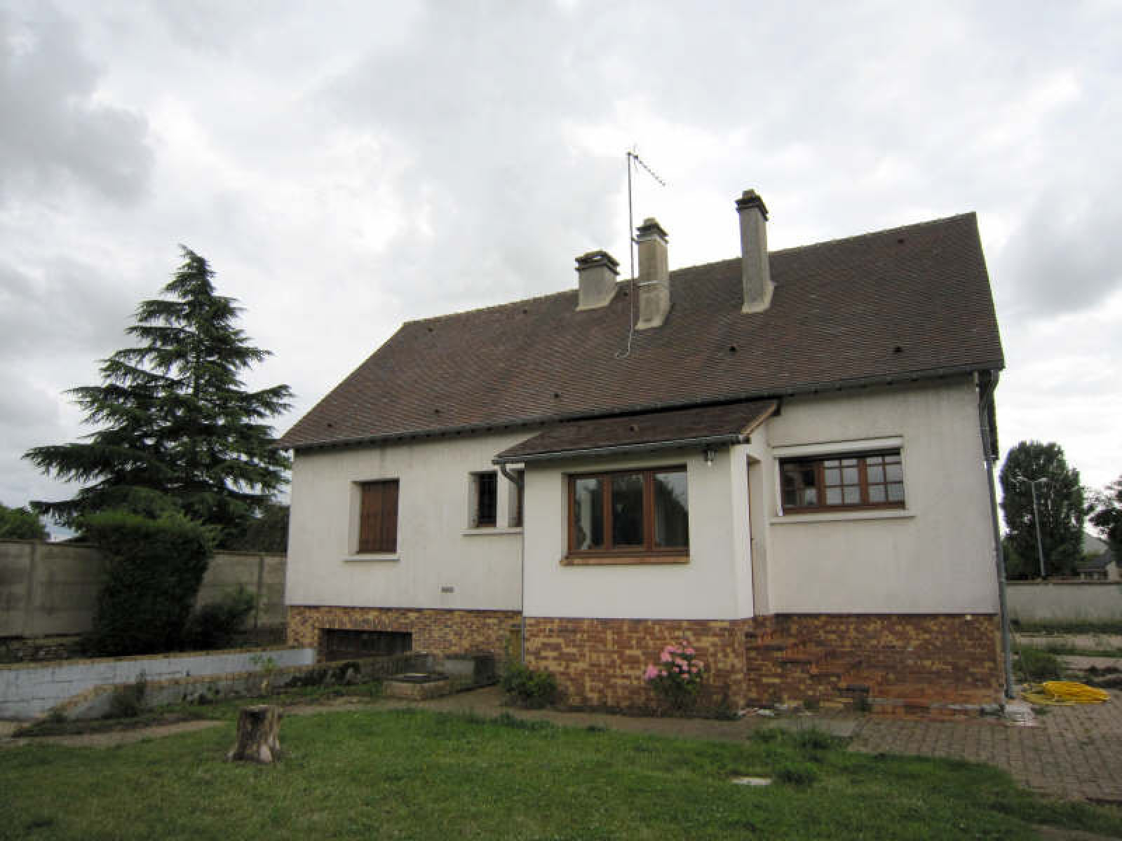 Pavillon comprenant entrée dans véranda, cuisine, séjour, 2 chambres, salle de bains avec wc.~Grenier d'environ 50 m² à aménager.~Sous-sol total comprenant bureau, chaufferie, garage 2 voitures.~Abri de jardin.~Terrain clos d'environ 1.332 m².~Réf 1549
