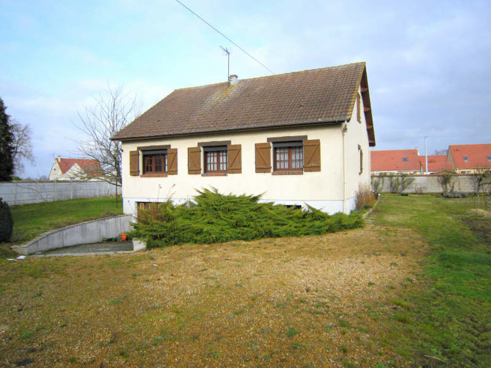 Pavillon comprenant entrée, salon avec cheminée, cuisine aménagée et équipée, 2 chambres, salle de bains avec douche, wc.~Grenier aménageable (escalier, dalle béton, 2 fenêtres en pignon, électricité).~Sous-sol total comprenant garage 2 voitures, buanderie, cave, atelier.~Grange d'environ 80 m². Terrasse.~Terrain clos d'environ 894 m².~Réf 1783