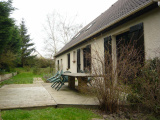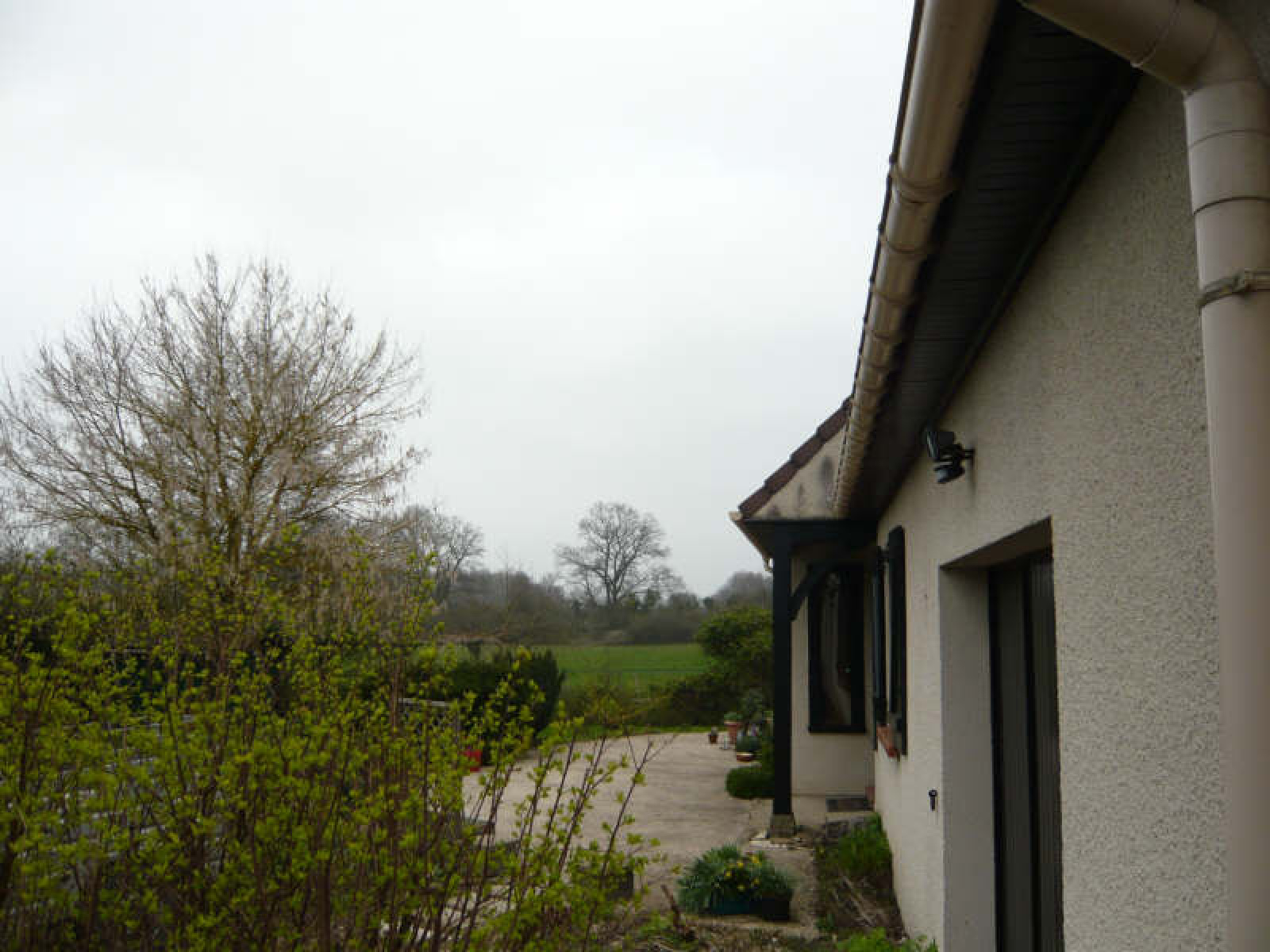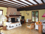 Pavillon style rustique comprenant entrée, séjour avec cheminée double foyer, cuisine aménagée, chambre, salle de bains, wc.~A l'étage : pièce palière, chambre avec bureau, suite parentale (chambre avec salle de douche et wc).~Garage avec fosse, buanderie.~Terrain clos d'environ 1.078 m² avec jolie vue sur la campagne.~Réf 1429