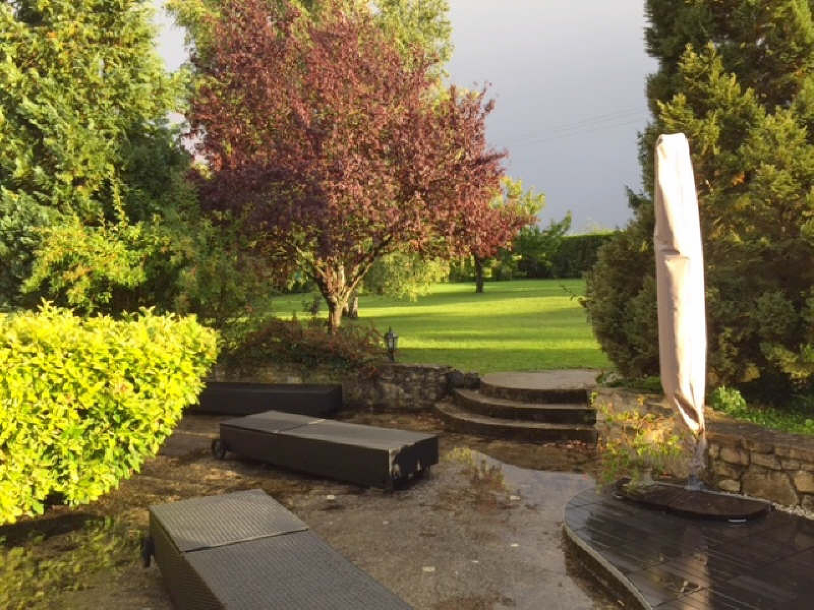 Pavillon comprenant entrée, cuisine aménagée avec coin repas, grand séjour avec cheminée et bar, deuxième grand salon, salle de bains, 2 wc, 4 chambres dont une avec salle de bains.~Sous-sol total comprenant garage, cave.~Terrain d'environ 2.250 m².~Réf 2872