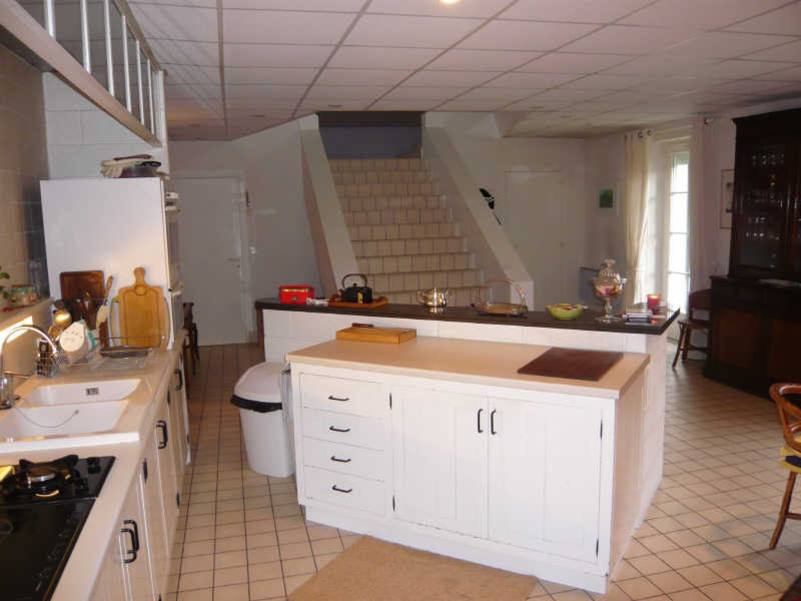Maison ancienne comprenant cuisine aménagée et équipée, salon / chambre, salle de bains, wc.~A l'étage : palier, salon toit cathédrale avec cheminée, salle de bains, wc, 3 chambres dont une avec dressing, wc et salle de douche. ~Bureau en mezzanine.~Garage 2 voitures. Cave à vin.~Terrain clos d'environ 400 m².~Réf 983