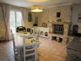 Pavillon comprenant entrée, cuisine américaine aménagée et équipée, salon avec cheminée insert, 2 chambres, salle de bains avec douche à l'italienne, wc.~A l'étage : palier / bureau, 2 chambres, wc.~Garage avec grenier.~Dépendance de 2 pièces.~Terrain clos d'environ 3.000 m² en partie boisé.~Réf 2140