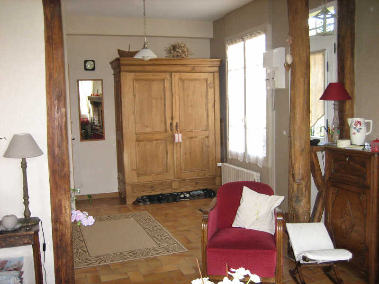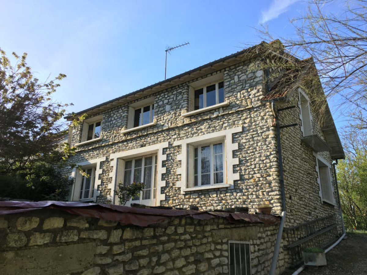 Maison sur sous-sol surélevé comprenant entrée dans salon salle à manger d'environ 45 m², grande cuisine aménagée et équipée, wc.~A l'étage : 3 chambres, salle de douche, wc. Combles aménageables.~Sous-sol comprenant garage, chaufferie, bureau, cave.~Petites dépendances. Terrain d'environ 1.800 m² en partie constructible.~Réf 114