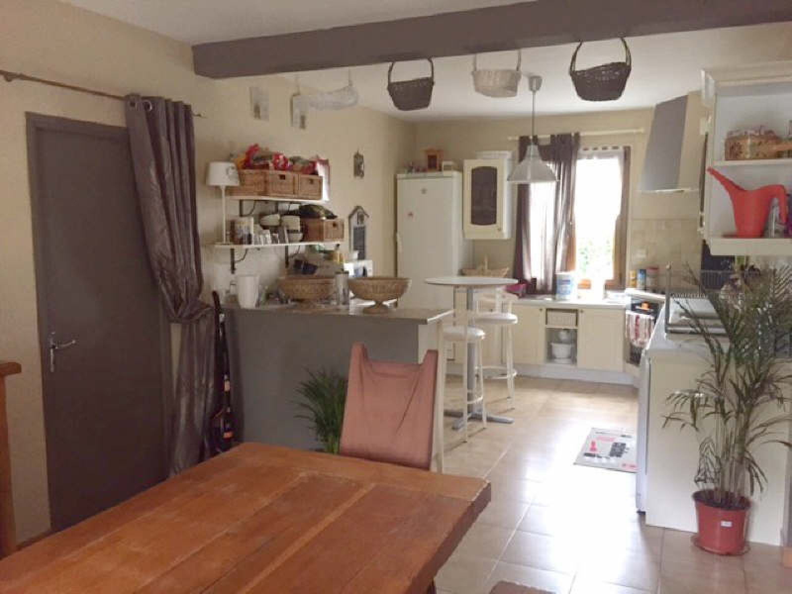 Pavillon comprenant entrée, séjour en L avec conduit de cheminée, cuisine américaine aménagée et équipée, chambre, salle de bains, wc.~A l'étage : 3 chambres dont une avec salle de douche et wc.~Garage double avec grenier. Chalet.~Terrain clos d'environ 724 m².~Ecoles et commerces sur place.~Réf 2821