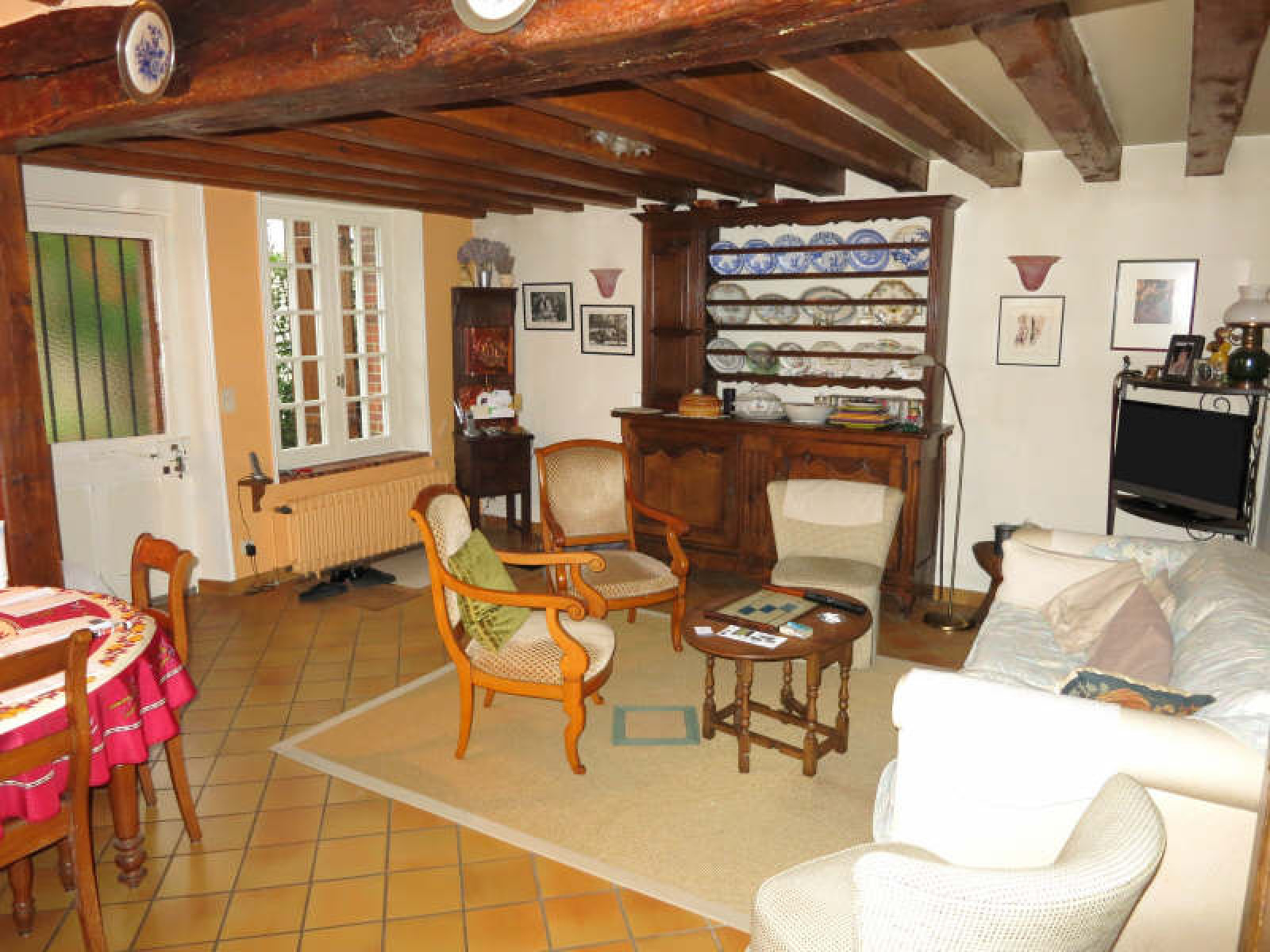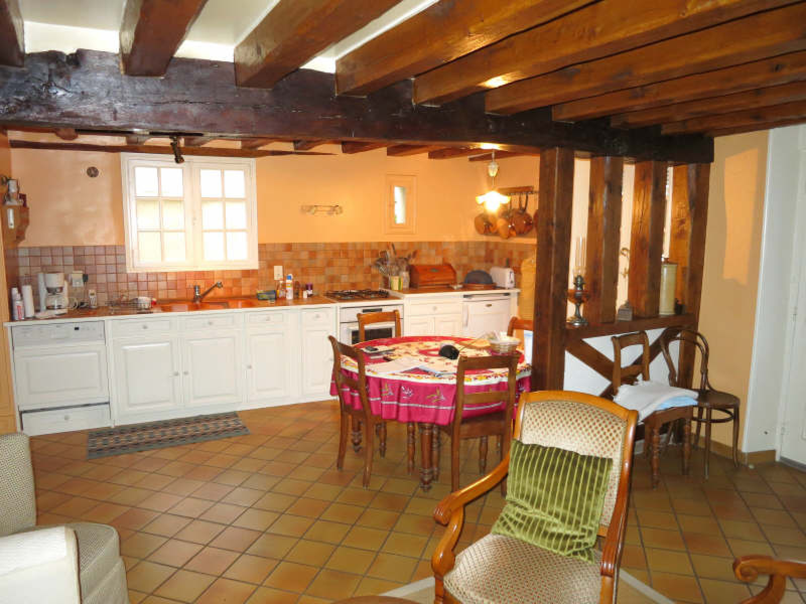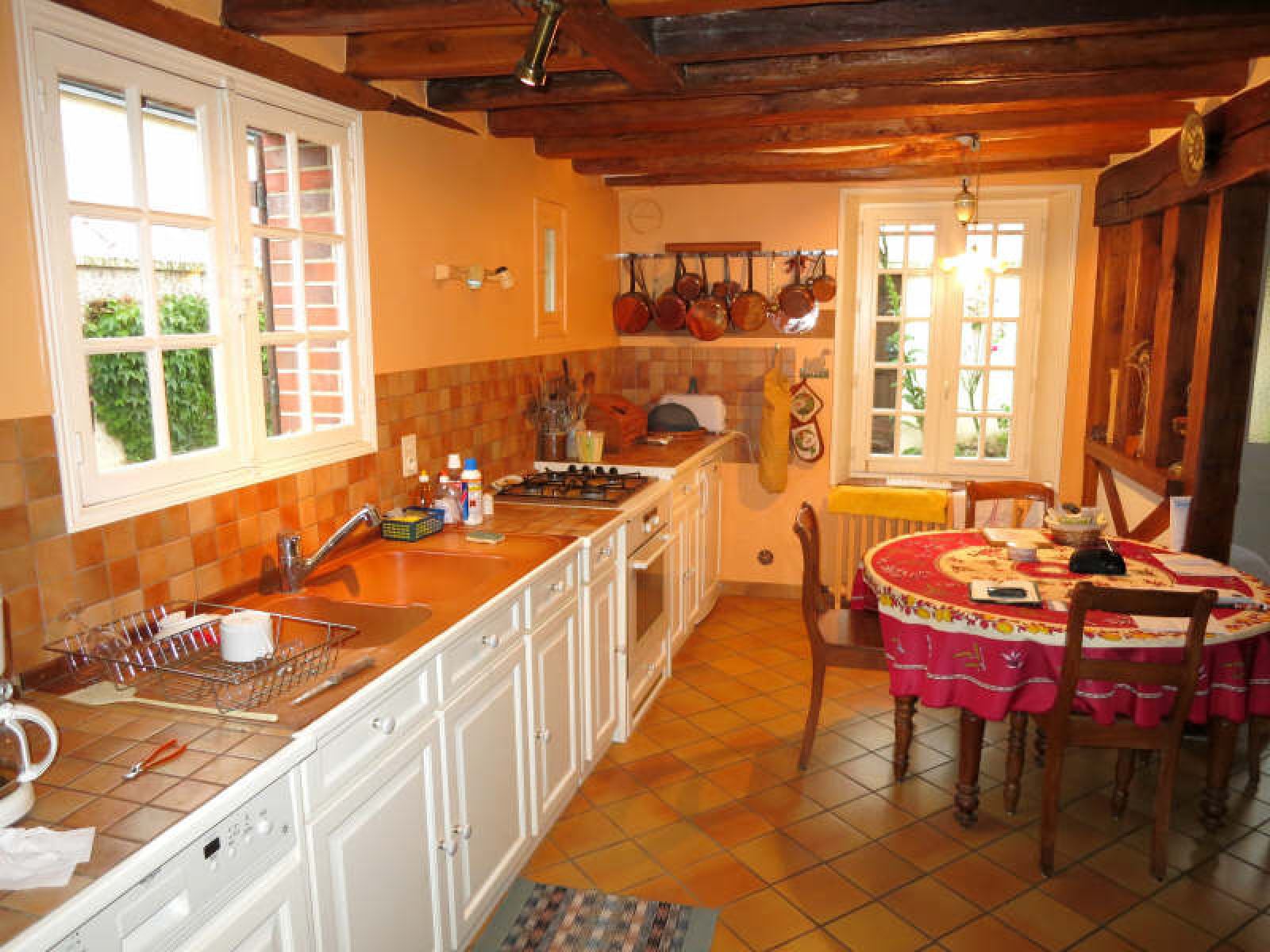 Maison ancienne de ville comprenant entrée, séjour, cuisine américaine aménagée et équipée, wc.~A l'étage : palier, 2 chambres, salle de bains avec wc.~Cave. Salle de douche extérieure.~Terrain clos d'environ 258 m².~Réf 2265