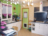 Pavillon comprenant entrée, salon avec cheminée insert, cuisine américaine aménagée et équipée, buanderie, wc.~A l'étage : palier, 4 chambres dont une avec salle de douche, wc, salle de bains.~Garage. Abris.~Terrain clos d'environ 1.001 m².~Réf 1297
