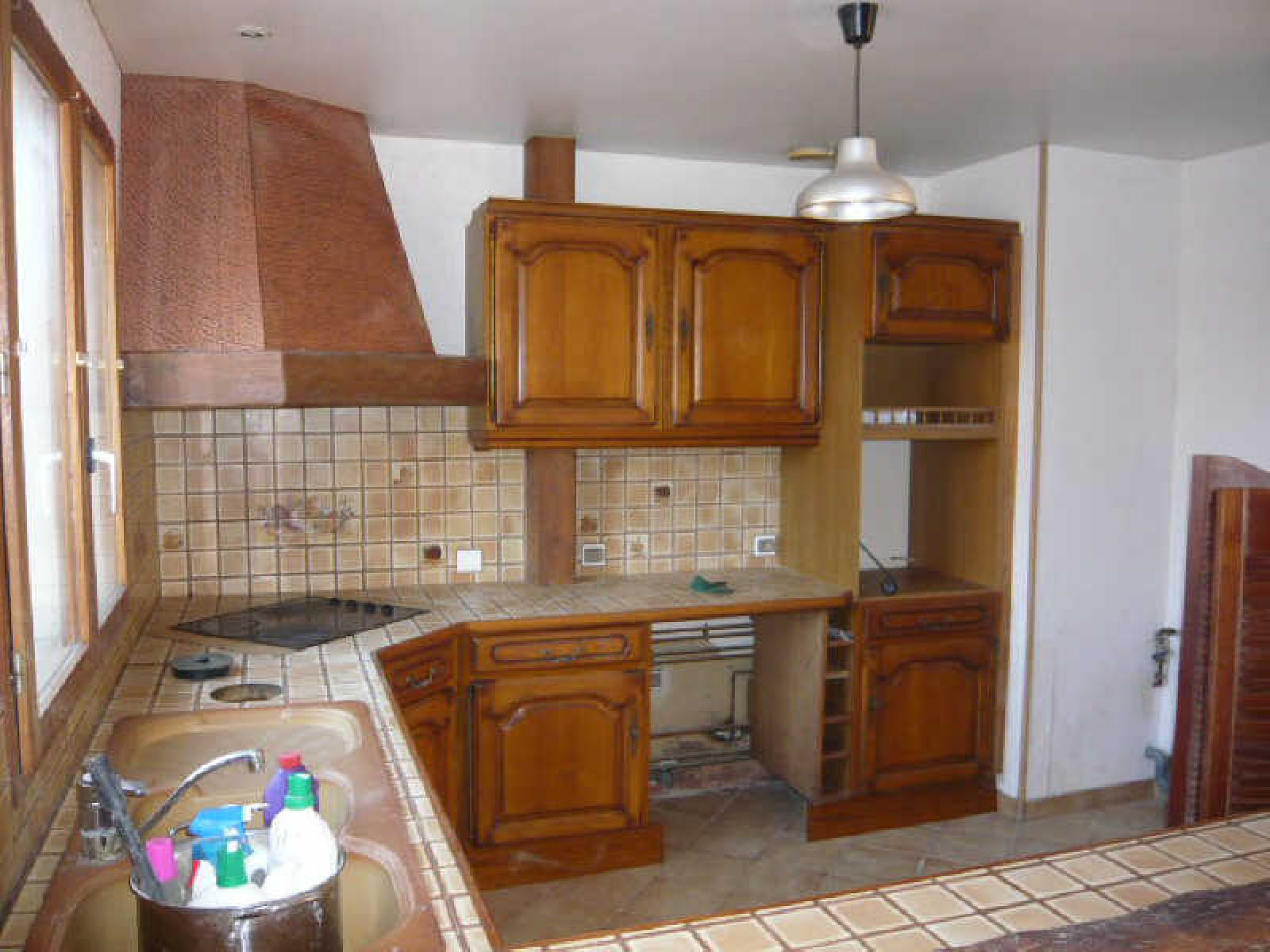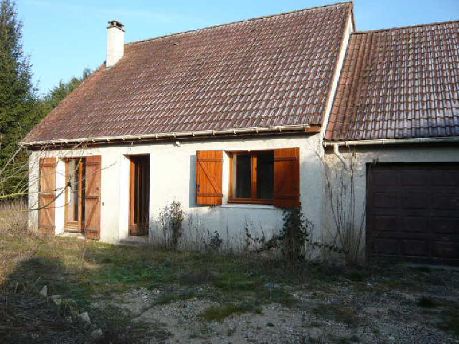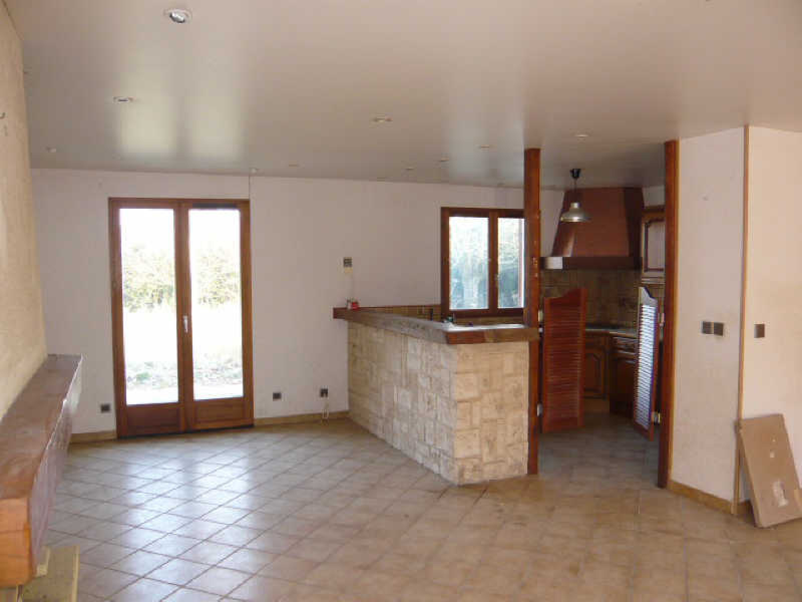Pavillon comprenant grand salon avec cheminée, cuisine américaine aménagée, chambre, salle de douche, wc.~Combles pré-aménagés.~Garage. Terrain clos d'environ 1.000 m².~Au calme. Travaux à prévoir.~Réf 1016