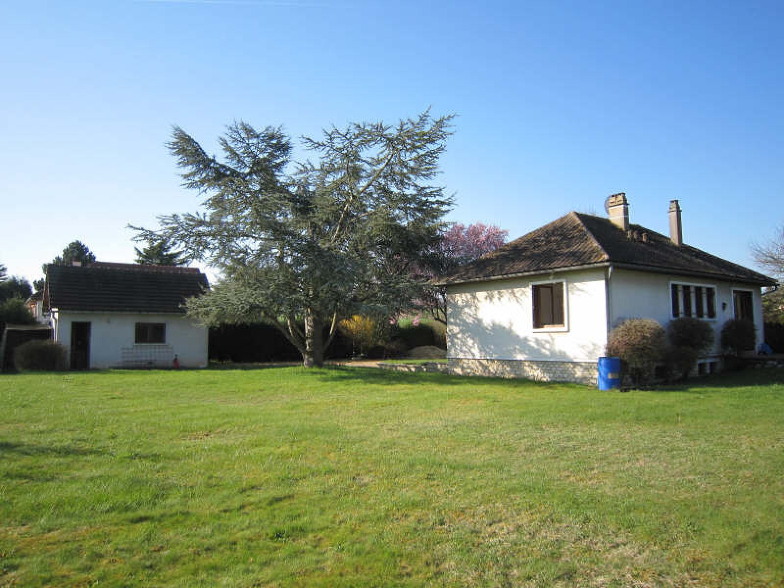 Pavillon comprenant entrée, séjour, cuisine américaine aménagée, 2 chambres, salle de bains, wc.~Sous-sol semi-enterré comprenant garage, chaufferie, buanderie, atelier.~Garage avec grenier aménageable.~Joli terrain clos d'environ 1.460 m².~Au calme.~Réf 1113