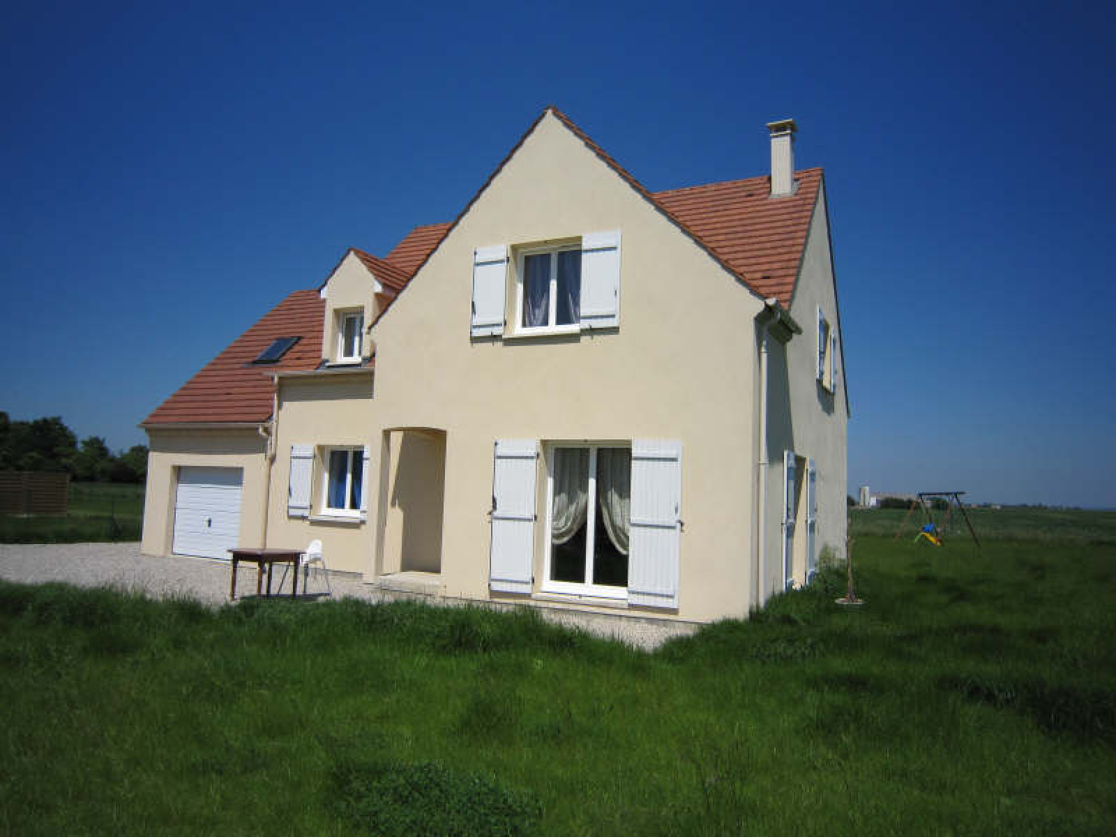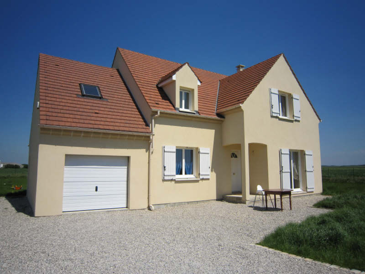Pavillon neuf comprenant entrée, salon (conduit de cheminée existant), cuisine aménagée et équipée, chambre avec dressing (salle de douche possible), wc.~A l'étage : pièce palière, 3 chambres, buanderie / lingerie, salle de bains, wc.~Garage avec grenier.~Terrain clos d'environ 1.500 m².~Réf 1883