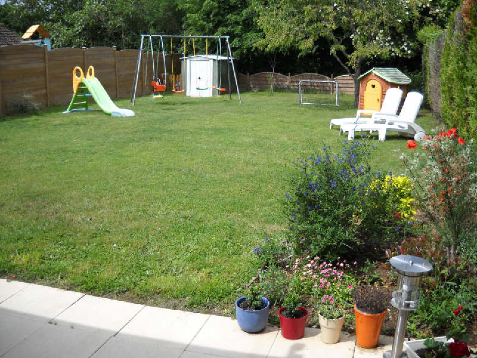 Pavillon comprenant entrée, salon, cuisine aménagée et équipée, salle à manger, wc. ~A l'étage : palier, 4 chambres, salle de bains avec douche et wc.~Garage attenant avec coin buanderie.~Terrain clos d'environ 565 m².~Réf 1160