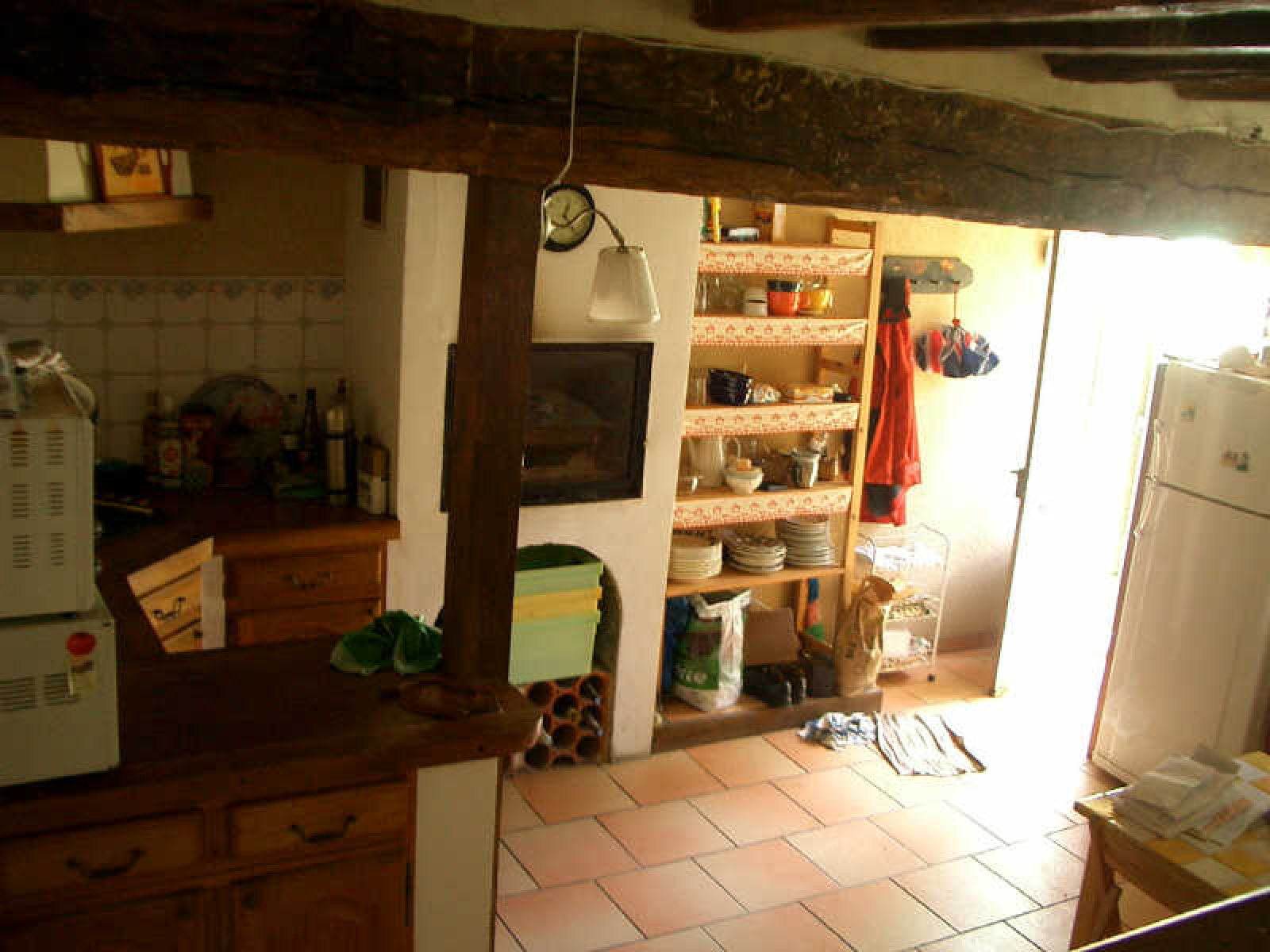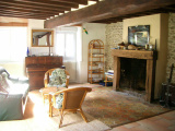 Dans village de charme, maison ancienne comprenant cuisine aménagée et équipée avec cheminée insert, salle à manger, salon avec cheminée.~A l'étage : palier desservant 3 chambres dont une avec toit cathédrale, salle de bains avec douche et wc.~Chaufferie / atelier. Petite dépendance.~Terrain clos de murs.~Réf 018