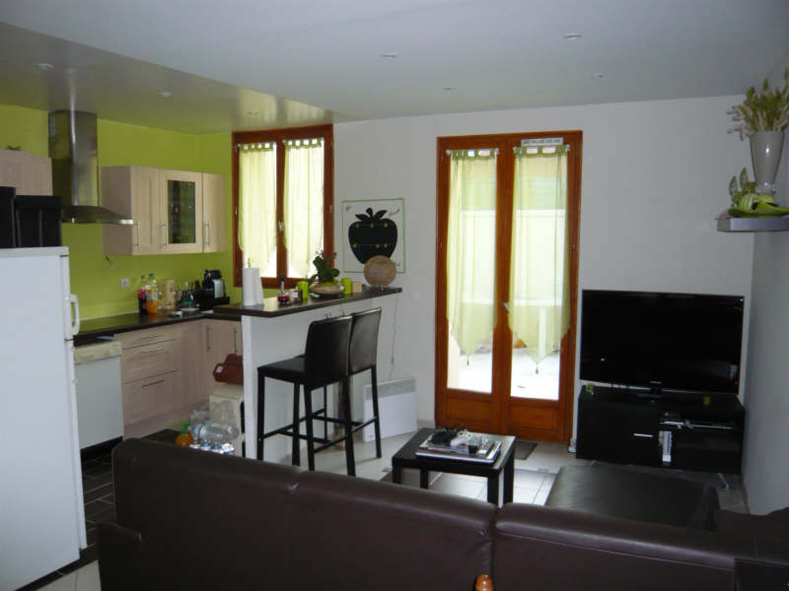 Maison ancienne de ville comprenant pièce principale avec cuisine américaine aménagée et équipée, salle de douche avec wc.~A l'étage : chambre, bureau.~Cour privative.~Réf 1721