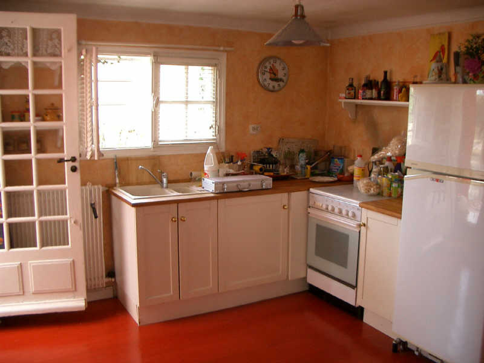 Maison ancienne comprenant entrée par véranda, cuisine aménagée, cellier, salle à manger avec cheminée, salon, chambre, salle de douche avec wc.~A l'étage : palier, 2 chambres, salle de douche avec wc.~Terrain d'environ 1.200 m².~Réf 398