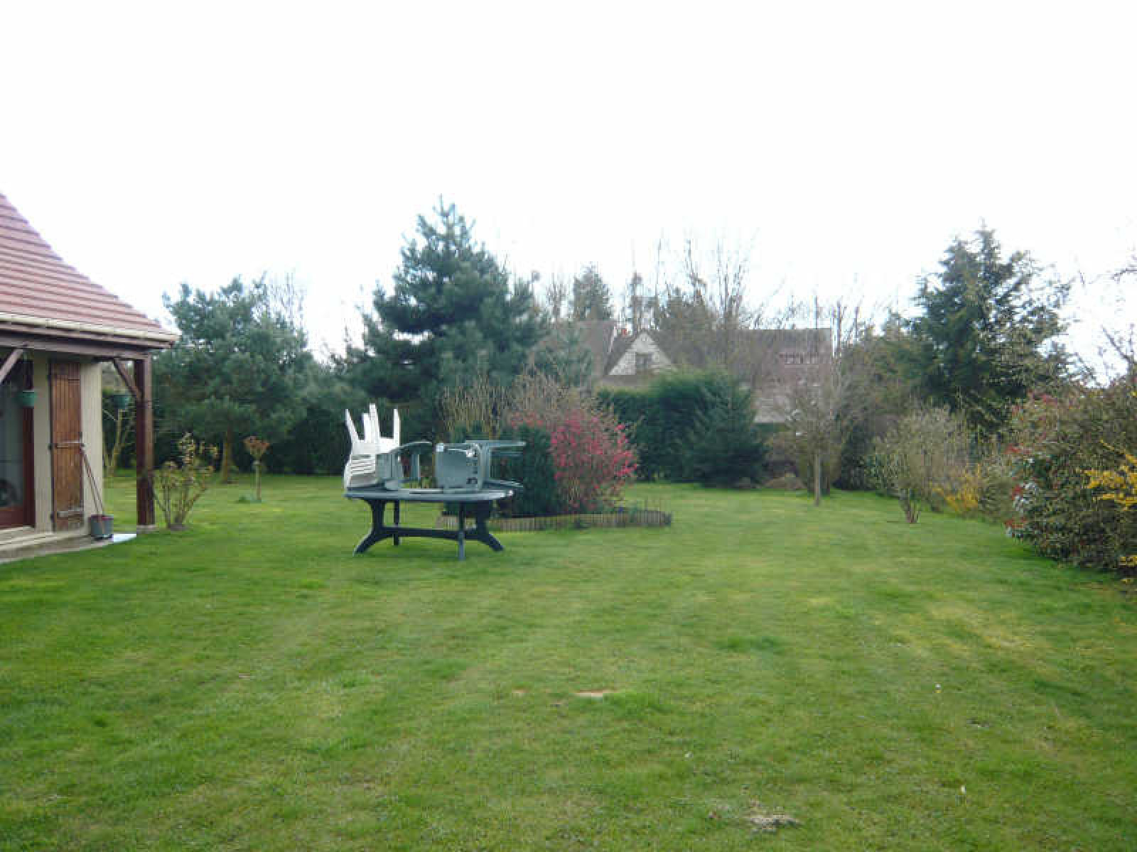 Pavillon comprenant entrée, séjour avec cheminée insert, cuisine américaine aménagée, chambre, salle de bains, wc.~A l'étage : 2 chambres, wc.~Possibilité de créer une chambre et une salle de douche supplémentaires.~Garage. Joli terrain clos d'environ 1.380 m².~Réf 405