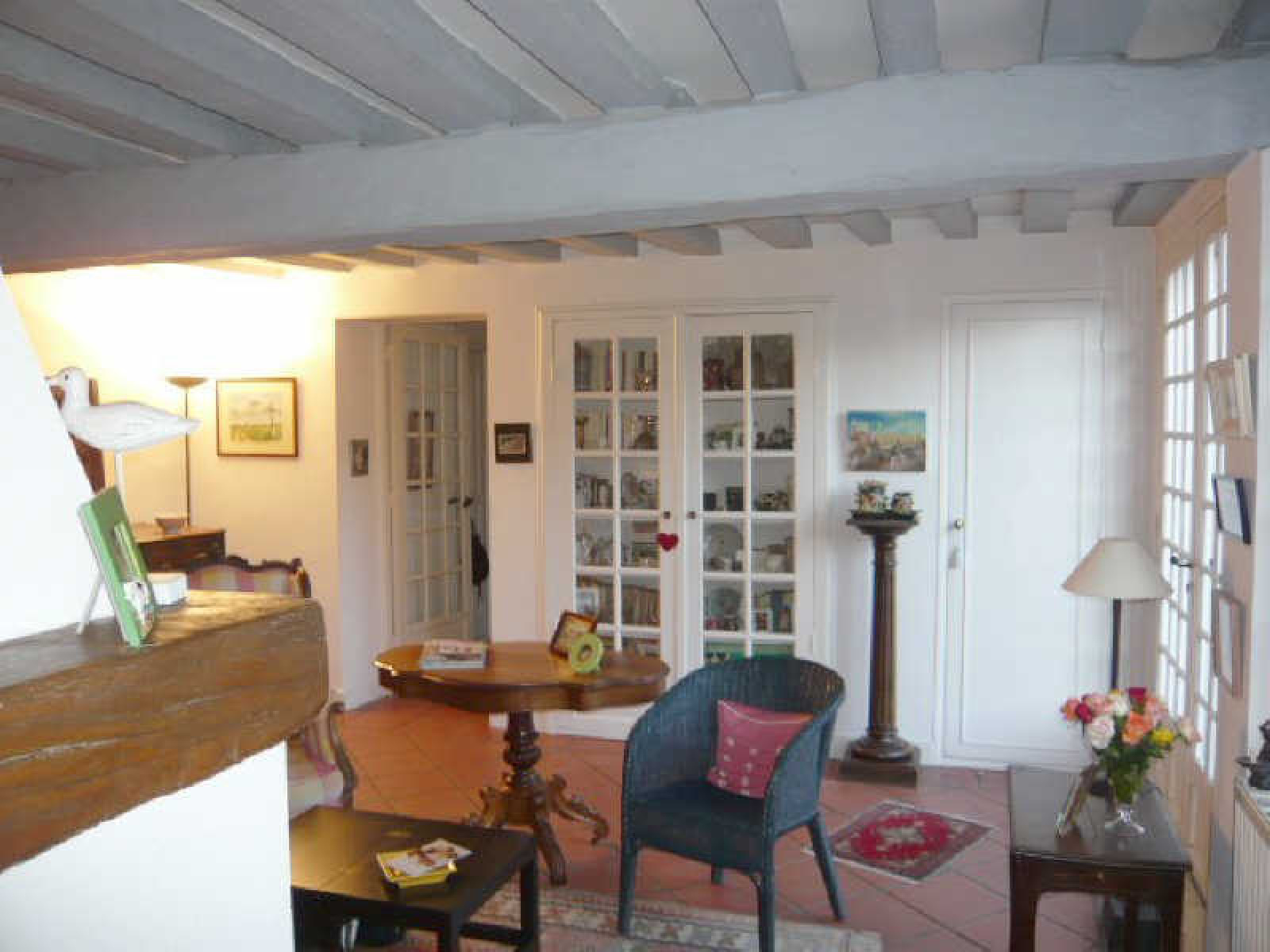 Maison ancienne comprenant entrée, salon avec cheminée, salle à manger, cuisine aménagée et équipée, chambre, salle de douche, wc, arrière-cuisine / chaufferie.~A l'étage : 2 chambres, bureau.~Garage. Terrain clos d'environ 452 m².~Beaux matériaux. Centre de village avec commerces.~Réf 688