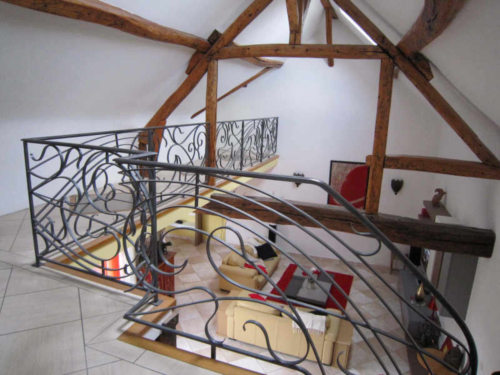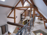 Maison ancienne comprenant entrée, salon salle à manger en L avec toit en partie cathédrale, cuisine aménagée et équipée, 2 chambres, salle de bains, wc.~A l'étage : palier / mezzanine avec coin bureau, 2 chambres dont une avec bureau, salle de douche avec wc.~Garage. Chaufferie / buanderie.~Terrain clos d'environ 860 m².~Beaux volumes.~Réf 1856