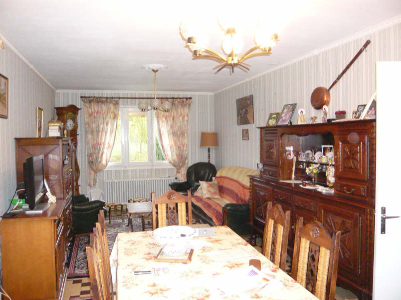 Pavillon comprenant entrée, cuisine, salon, chambre, wc, salle de bains.~A l'étage : grande pièce palière à aménager, grande chambre.~Sous-sol total comprenant garage, atelier, buanderie, chaufferie, cellier.~Terrain d'environ 1.579 m².~Réf 1303