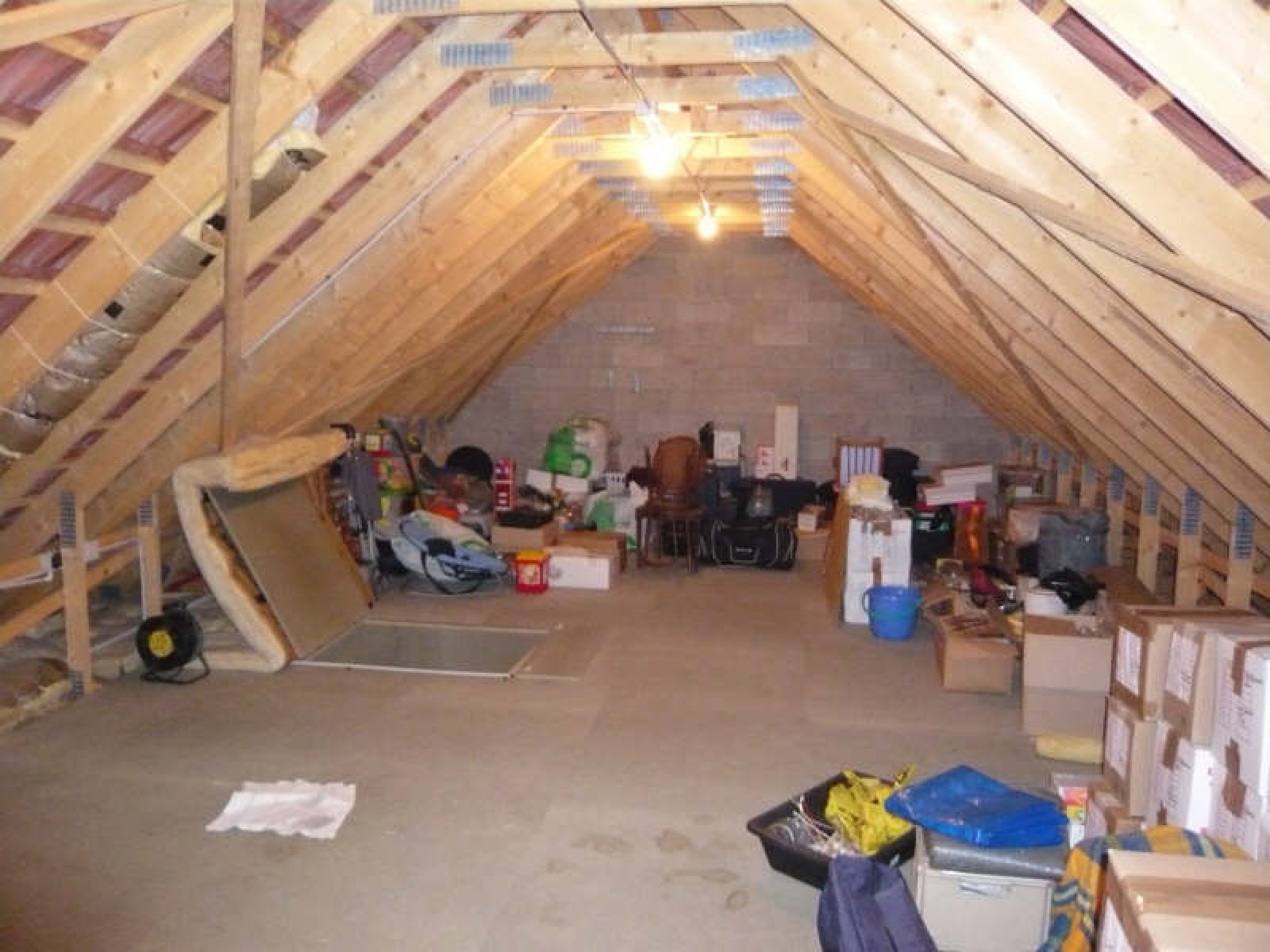 Pavillon comprenant salon, cuisine américaine aménagée et équipée, 2 chambres, salle de douche, wc.~Combles aménageables d'environ 50 m² au sol.~Garage isolé avec coin buanderie et grenier.~Terrain clos d'environ 1.004 m².~Réf 1385
