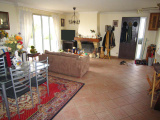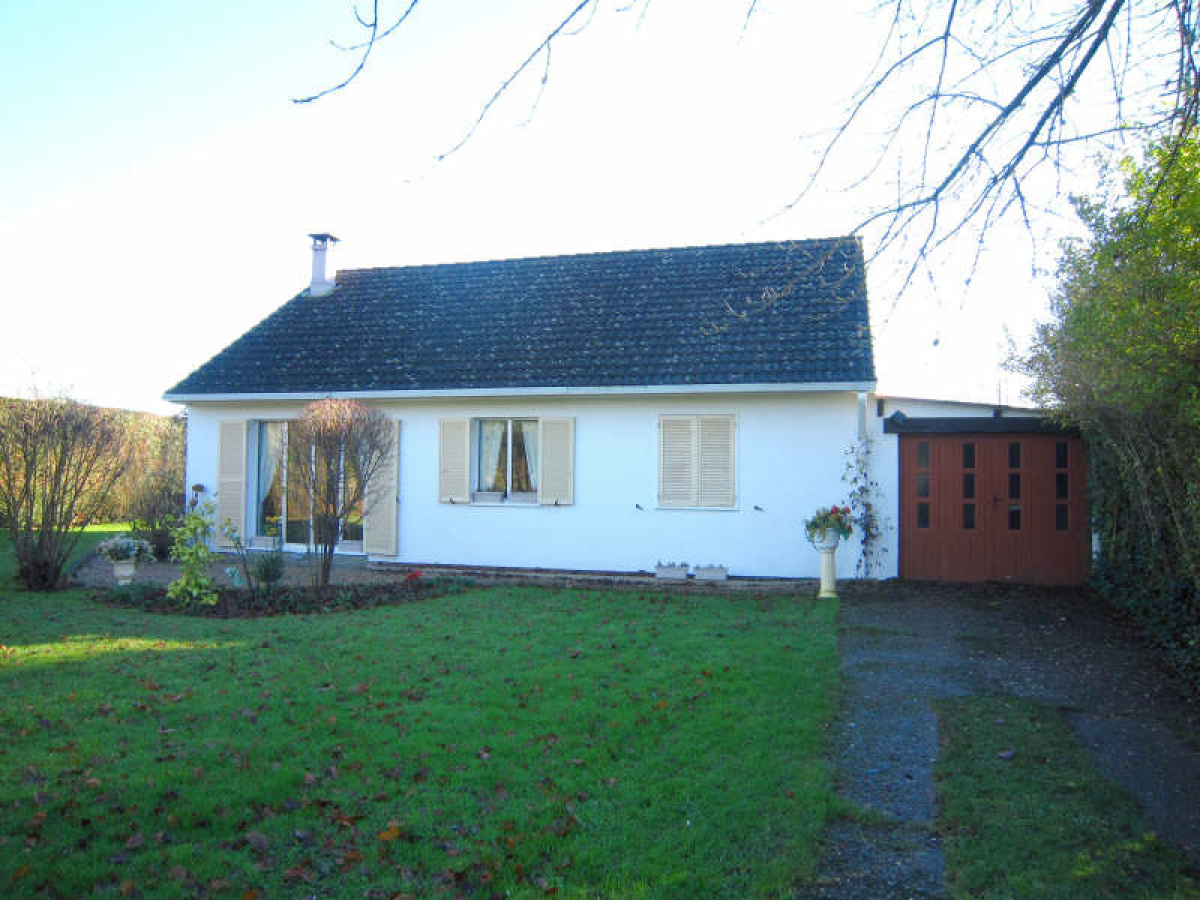 Pavillon de plain-pied comprenant salon avec cheminée, cuisine américaine aménagée, 3 chambres, salle de bains avec wc.~Grand garage.~Terrain clos d'environ 1.000 m².~Réf 2641