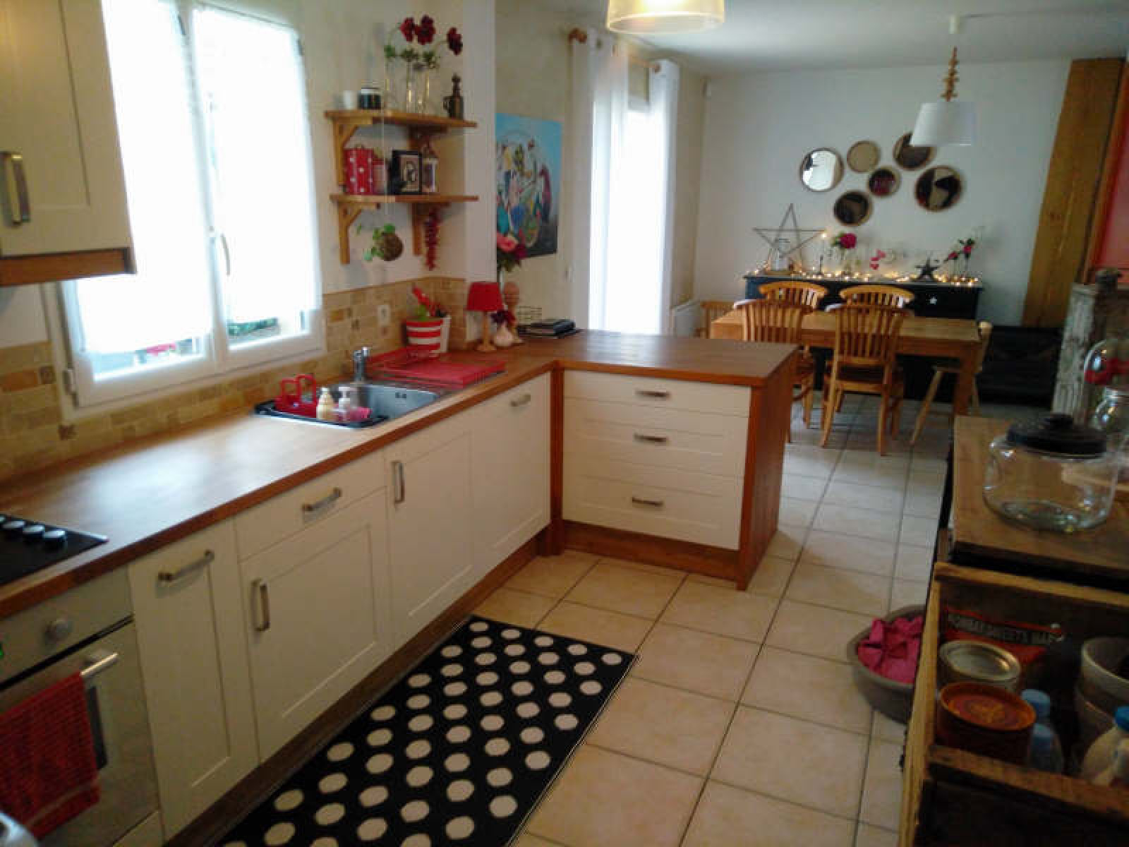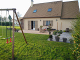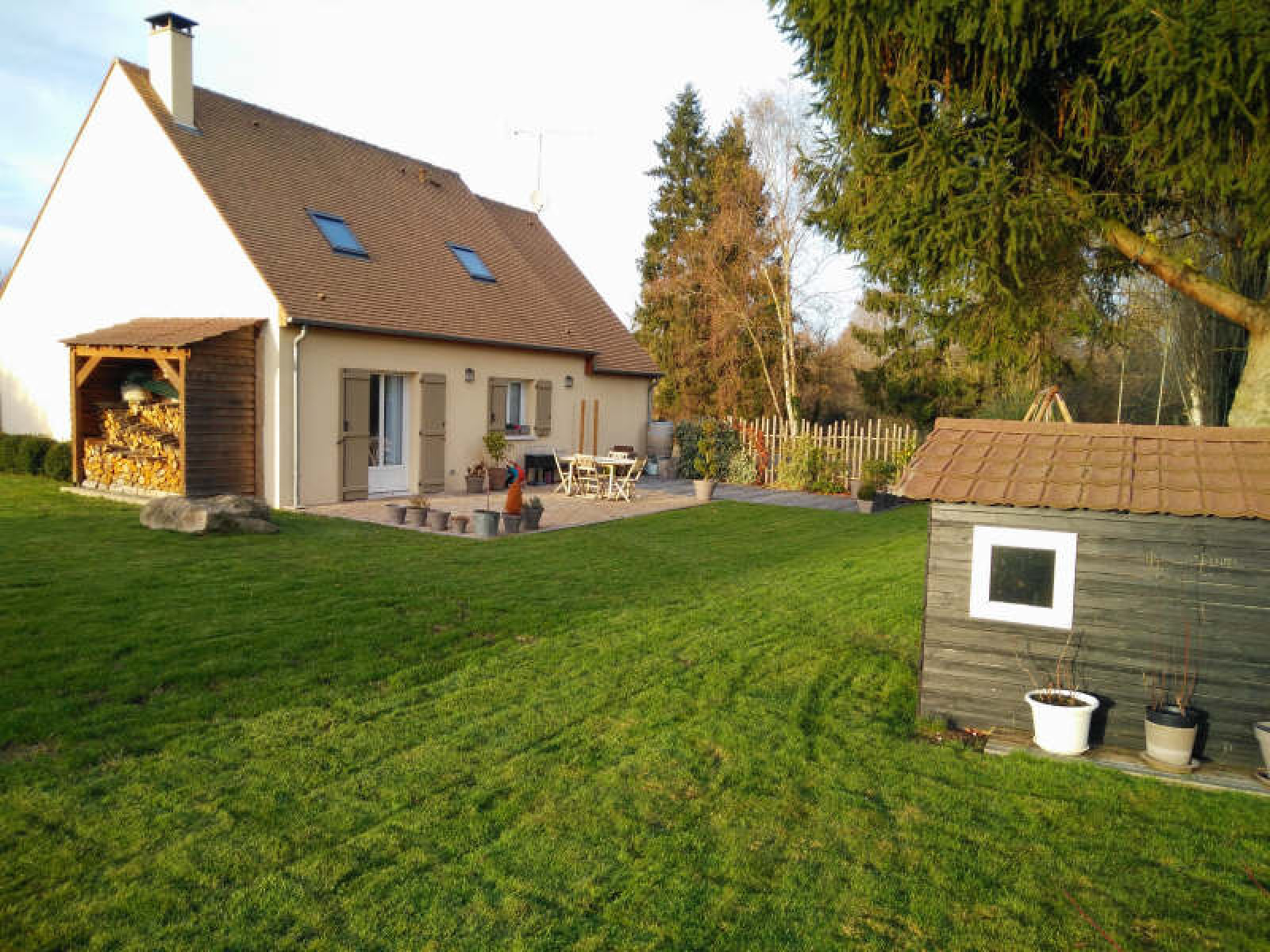 Pavillon comprenant séjour avec poêle à bois, cuisine américaine aménagée et équipée, arrière-cuisine / buanderie, chambre avec salle de douche, wc.~A l'étage : 3 chambres, salle de bains avec wc, pièce à terminer.~Garage attenant. Bûcher. Chalet.~Terrain clos d'environ 1.100 m².~Réf 3197