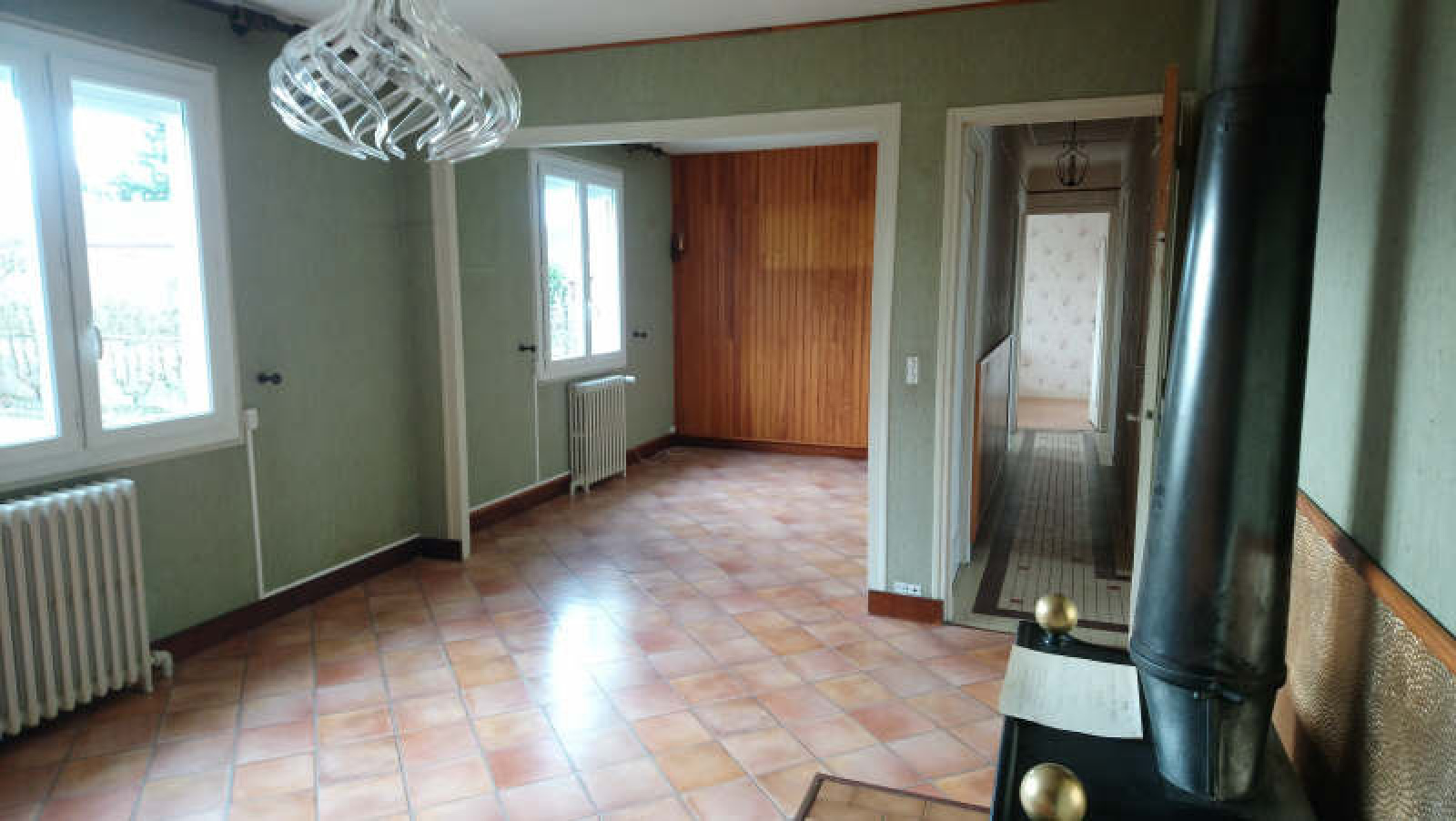 Maison traditionnelle comprenant cuisine aménagée, séjour avec poêle Godin, 2 chambres, bureau, salle de douche, wc. ~Sous-sol total surélevé comprenant cave, garage, chaufferie / buanderie. ~Grenier.~Terrain clos d'environ 757 m².~Réf 3432