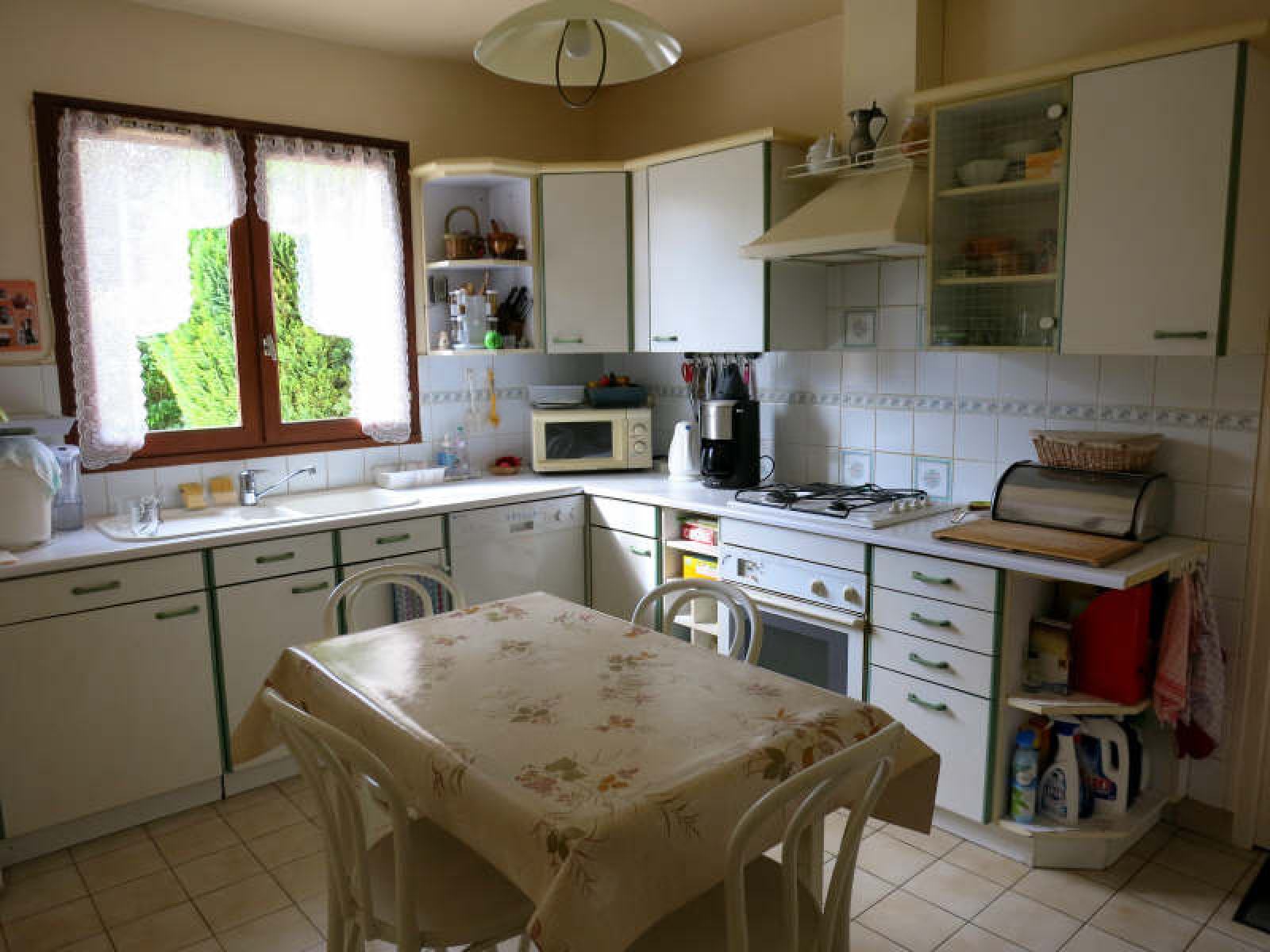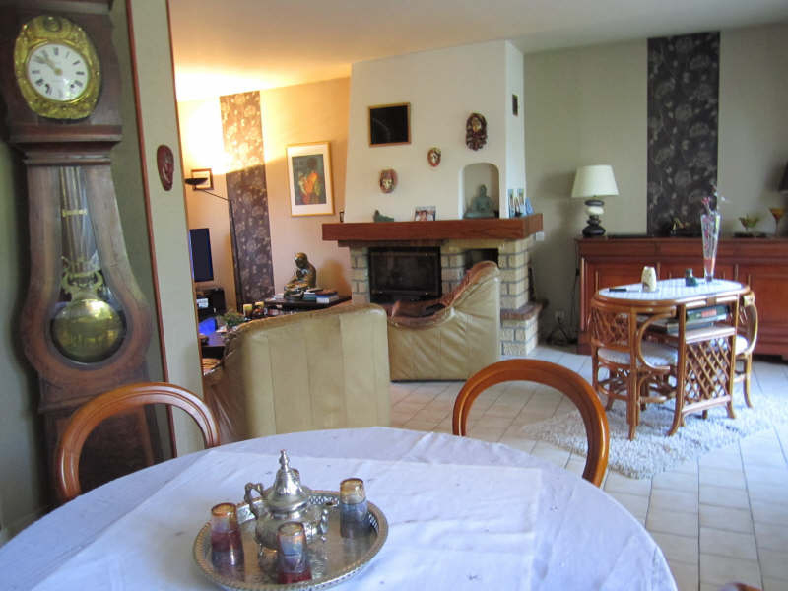 Pavillon comprenant entrée, séjour en L avec cheminée insert, cuisine aménagée et équipée, arrière-cuisine / buanderie, chambre, salle de bains, wc.~A l'étage : pièce palière, 3 chambres, salle de douche avec wc.~Garage avec grenier.~Terrain clos d'environ 800 m².~Réf 2584