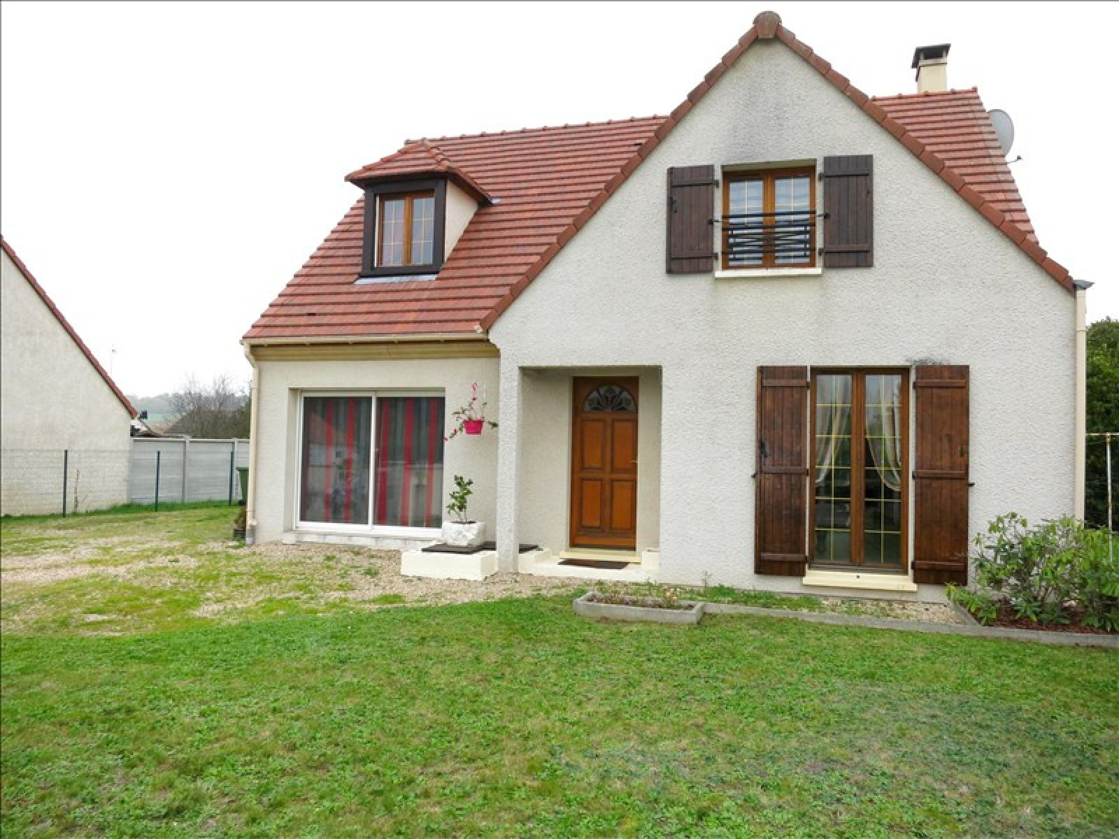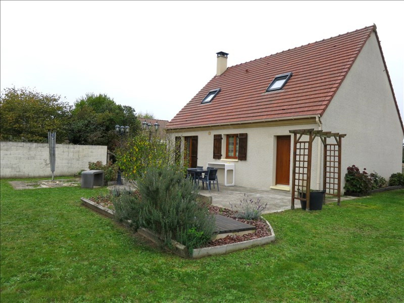 Pavillon comprenant séjour double avec cheminée insert, salle à manger, buanderie, wc.~A l'étage : 3 chambres, salle de bains, wc.~Terrain clos d'environ 800 m² avec chalet bois.~Ecoles et commerces sur place, au calme.~Réf 3383