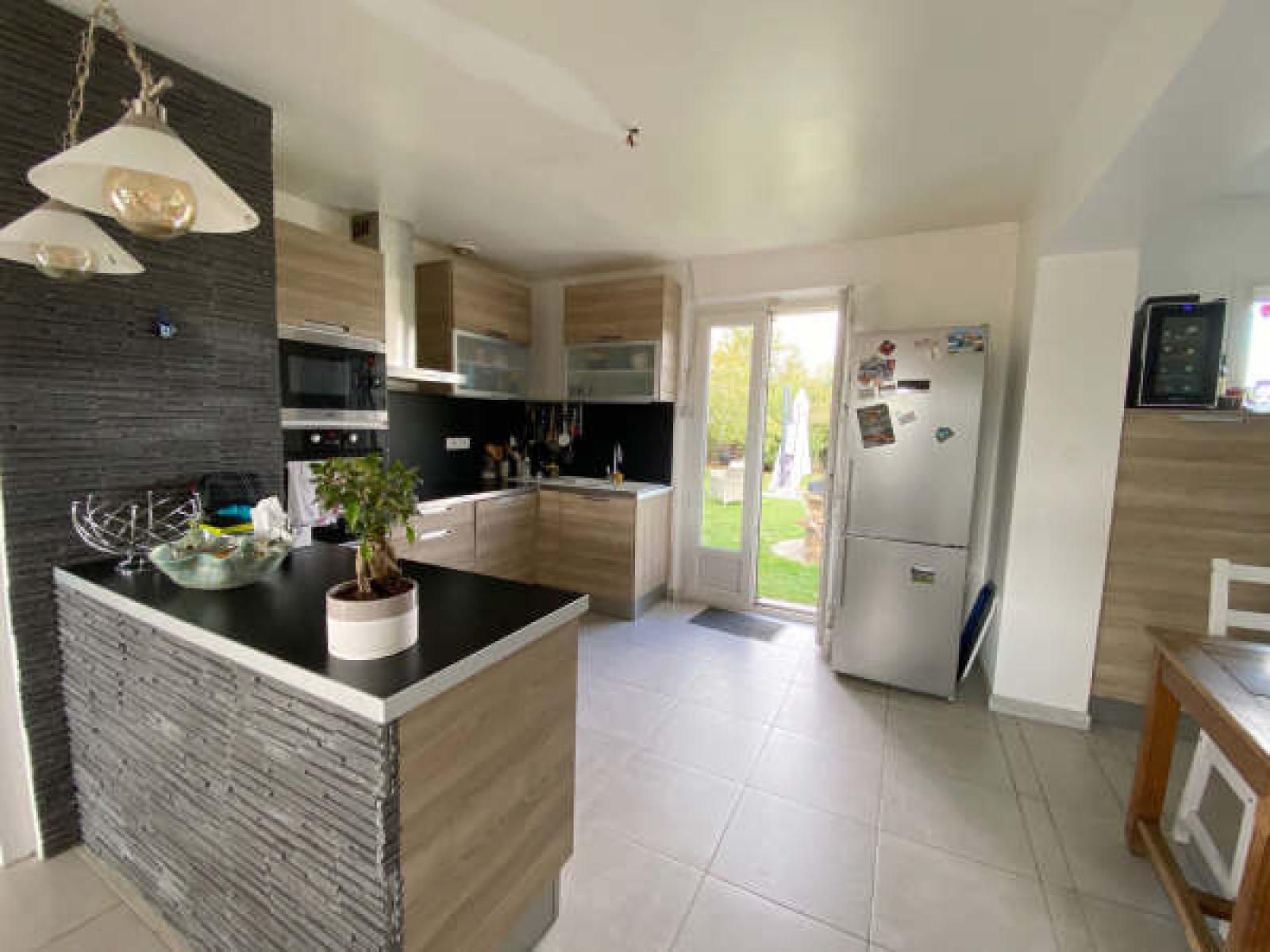 Proche CONDE SUR VESGRE dans le 78~Maison traditionnelle très lumineuse comprenant grand séjour avec poêle, cuisine américaine aménagée, 2 chambres, salle de douche à l'italienne, buanderie, wc.~A l'étage : 3 chambres.~Terrain clos d'environ 1.022 m².~Réf 4004