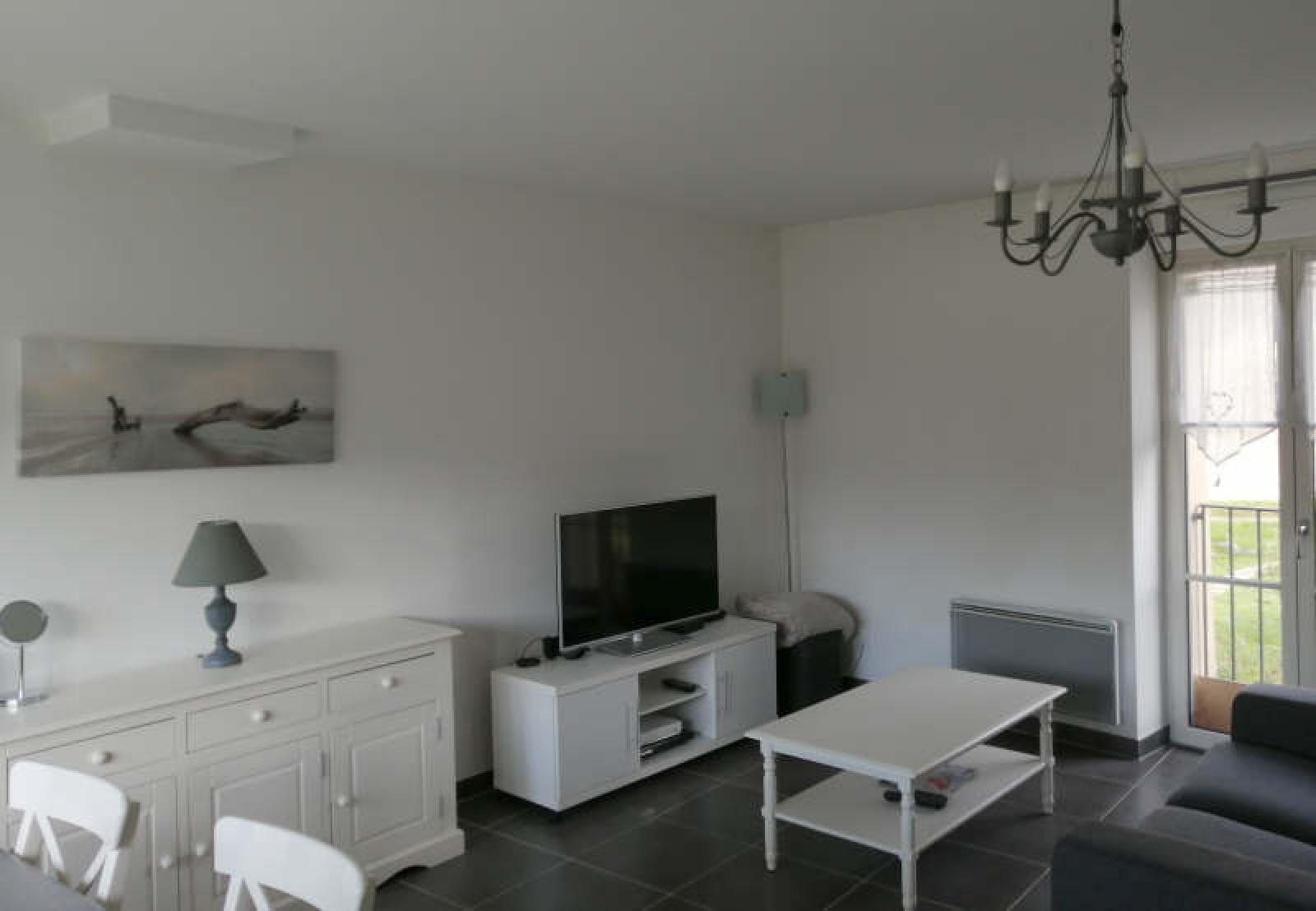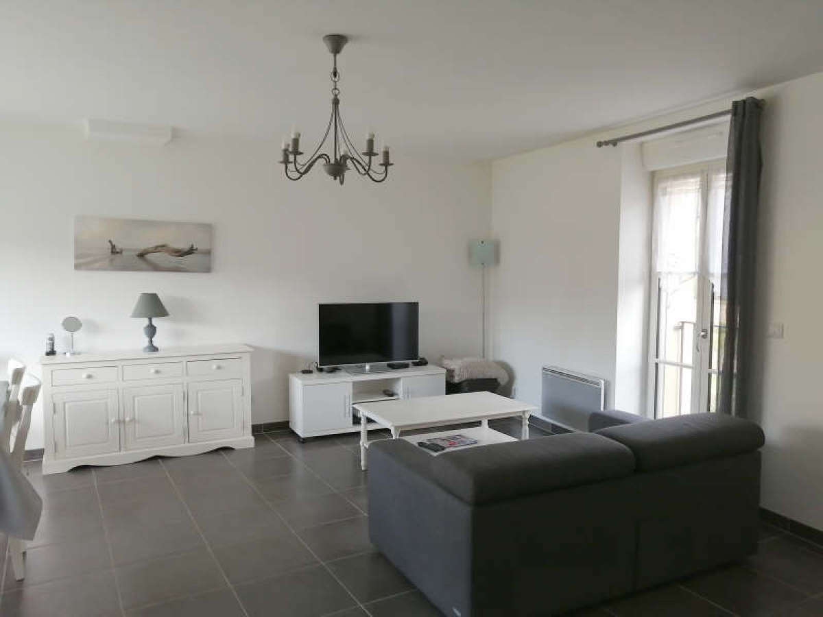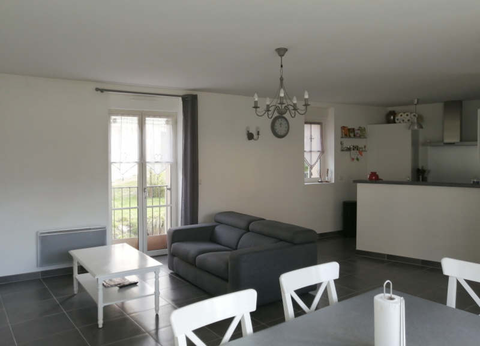 Appartement comprenant entrée avec placard, salon salle à manger, cuisine américaine aménagée et équipée, wc.~A l'étage : 2 chambres, salle de douche, wc.~Cave.~Jardinet privatif avec 2 places de parking.~Copropriété de 27 lots. Environ 35 EUR de charges par mois. Aucune procédure en cours menée sur le fondement des articles 29-1 A et 29-1 de la loi n°65-557 du 10 juillet 1965 et de l'article L. 615-6 du CCH.~Réf 3931