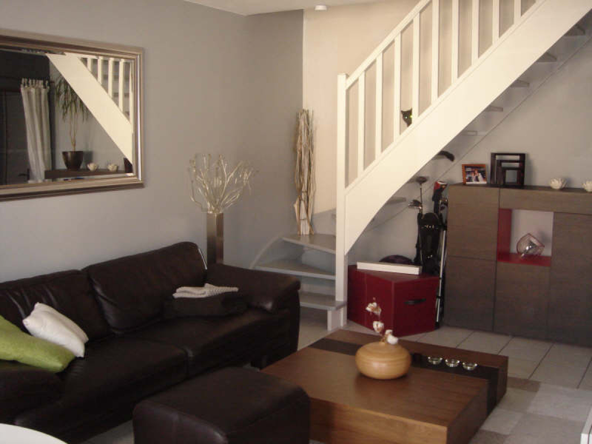 Au premier étage, appartement de type F3 en duplex comprenant entrée, salon avec balcon, cuisine américaine aménagée, wc avec lave-mains.~A l'étage : palier, 2 chambres, salle de douche.~2 places de parking en sous-sol.~Toutes commodités à pied.~Réf 1656