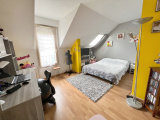Au premier étage, appartement en duplex comprenant entrée, séjour, cuisine aménagée, chambre, salle de douche, wc.