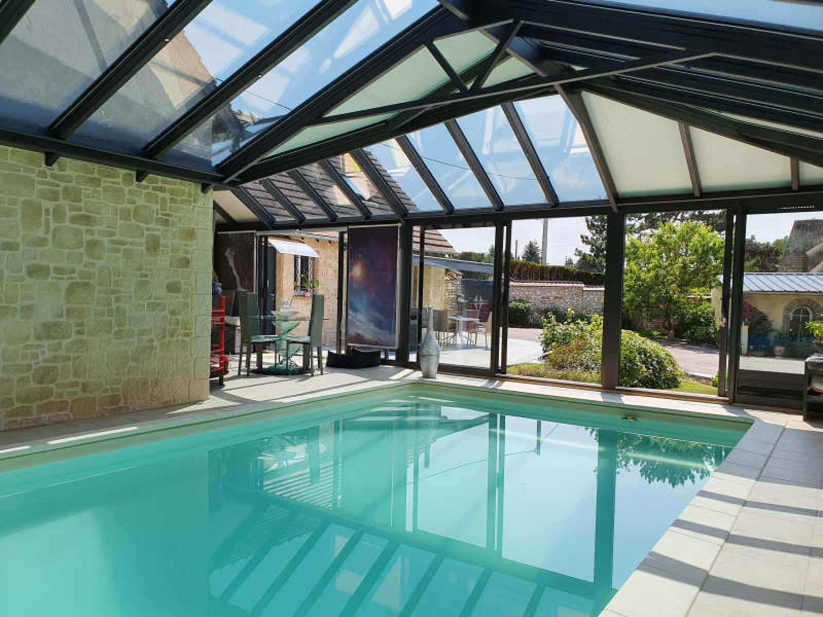 12 minutes HOUDAN~Maison traditionnelle comprenant grand séjour, cuisine aménagée et équipée, chambre avec salle de douche et wc, salle de douche, wc, véranda avec piscine. ~A l'étage : 2 bureaux, chambre.~Dépendance comprenant 3 garages.~A l'étage : appartement comprenant cuisine, séjour, 3 chambres, salle de douche, wc.~Atelier. Carport.~Terrain clos d'environ 1.208 m².~Réf 3968