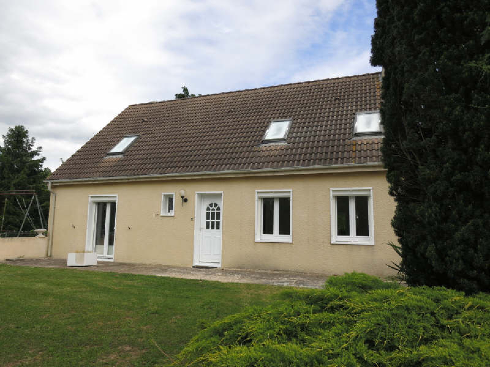 8 minutes HOUDAN~Pavillon comprenant entrée avec placard, salon salle à manger avec cheminée insert, cuisine aménagée et équipée, chambre avec salle de douche, wc.~A l'étage : 3 chambres dont une avec salle de douche, salle de bains balnéo, dressing, wc.~Sous-sol total comprenant buanderie, atelier, garage.~Terrain clos d'environ 2.350 m².~Réf 3954