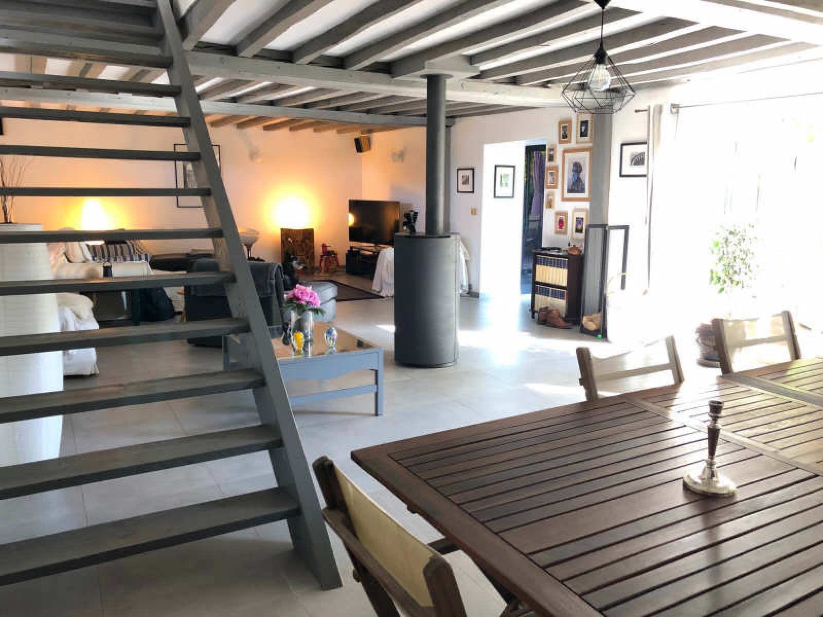 2 minutes HOUDAN~Maison ancienne comprenant une pièce d'environ 40 m², grande cuisine aménagée et équipée avec coin repas, arrière-cuisine / buanderie, séjour d'environ 72 m² avec poêle, wc.~A l'étage : 4 chambres dont une avec dressing, bureau, salle de douche avec wc, salle de douche à l'italienne, wc.~Grange d'environ 110 m².~Terrain clos d'environ 1.200 m².~Réf 3837