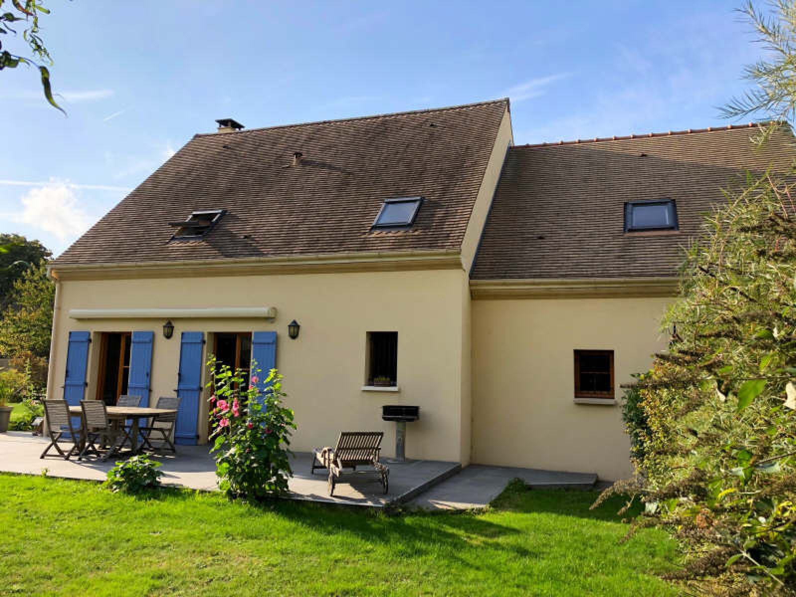 8 minutes HOUDAN dans le 78~Maison comprenant séjour avec poêle, cuisine américaine aménagée et équipée, chambre, salle de douche avec wc.~A l'étage : pièce palière, 2 chambres, grande pièce / salle de cinéma, salle de bains avec wc.~Garage pour 2 voitures. Chalet.~Terrain clos d'environ 1.050 m².~Réf 3865
