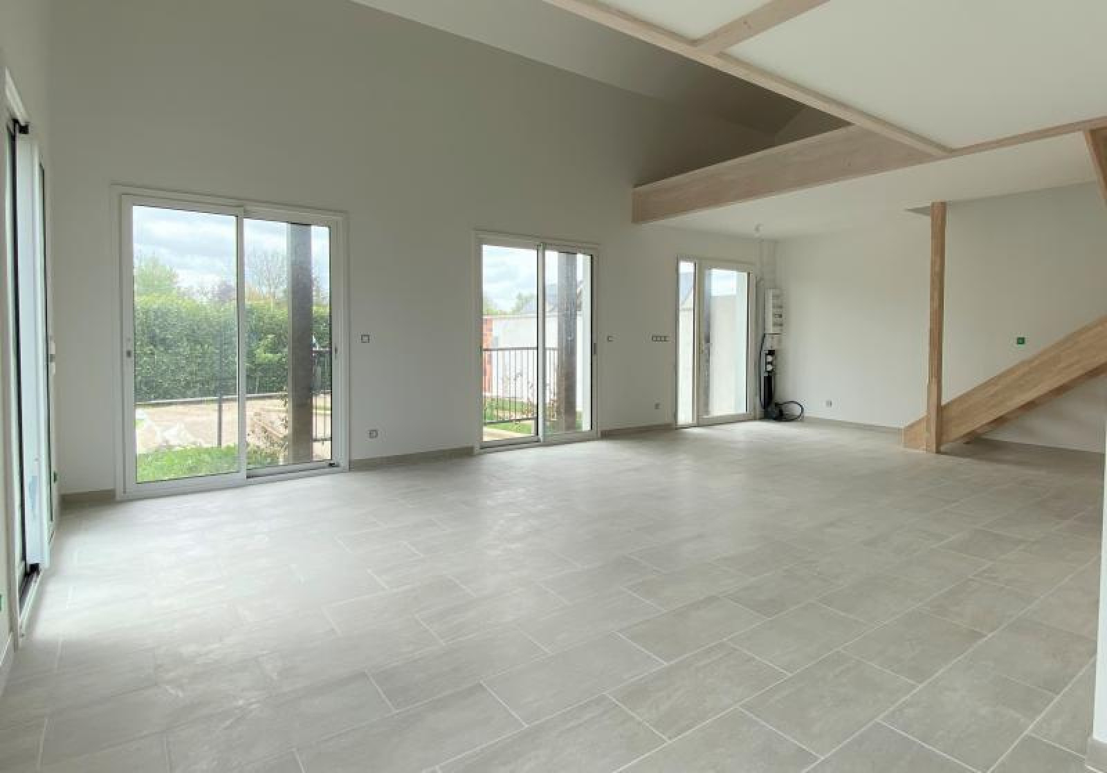 Très proche HOUDAN~Maison neuve comprenant séjour en L, cuisine américaine, chambre, salle de douche à l'italienne avec wc.~A l'étage : bureau en mezzanine, 2 chambres, salle de douche avec wc.~Sous-sol total comprenant garage et atelier. 2 places de parking.~Terrain clos d'environ 385 m².~Réf 4030