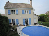 Pavillon comprenant séjour avec cheminée, cuisine américaine aménagée et équipée, wc.~A l'étage : 4 chambres, salle de bains avec wc.~Grenier aménageable.~Garage attenant avec partie arrière-cuisine.~Cave totale.~Pièce indépendante avec petit grenier.~Terrain clos d'environ 490 m² avec piscine.~Réf 1179